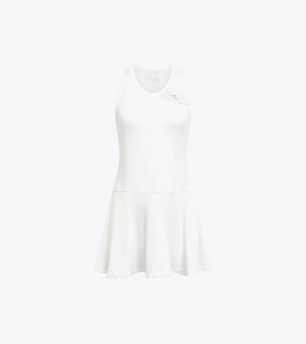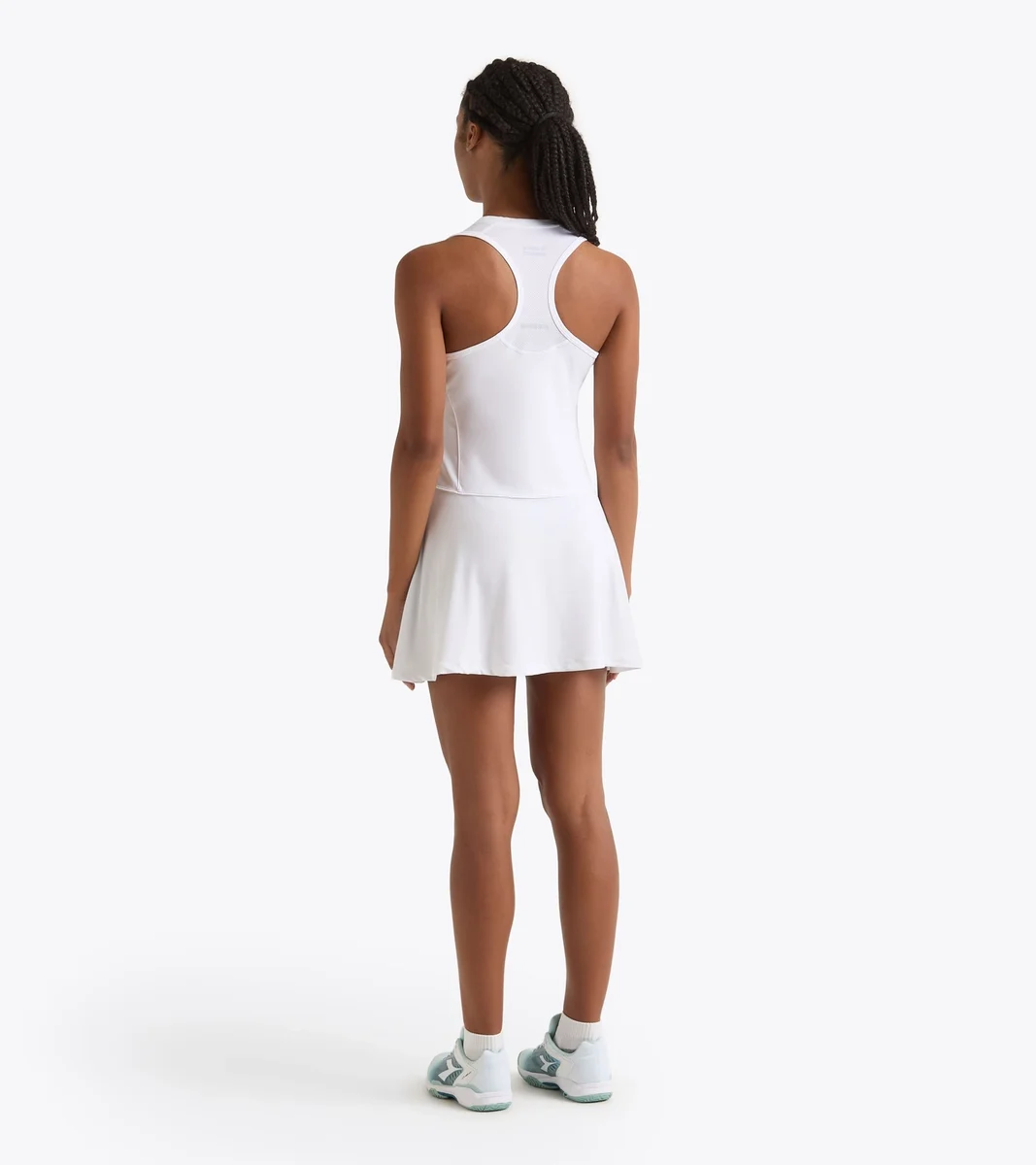 Weste-Kleid aus weichem, elastischem Polyester-Jersey mit Mesh-Einsatz am Rücken, niedriger Taille und ausgestelltem Rock. Perfekt für Ihre Matches und die intensivsten Ballwechsel.