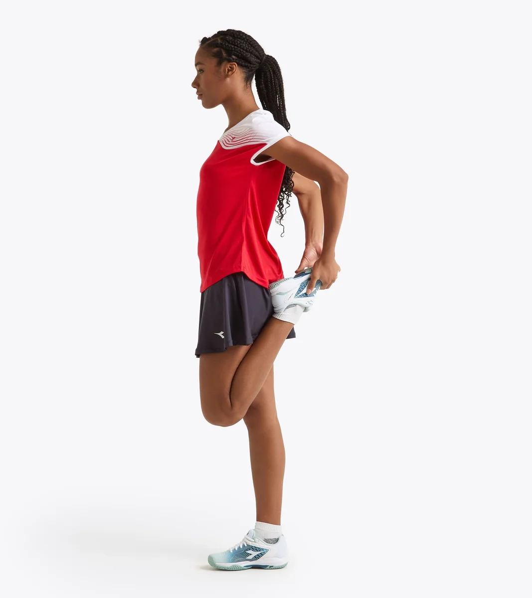 Ein ausgestellter Rock aus weichem, elastischem Polyester-Jersey mit hoher Taille und praktischer Innentasche. Verleihen Sie Ihren Trainingseinheiten einen Hauch von Stil.