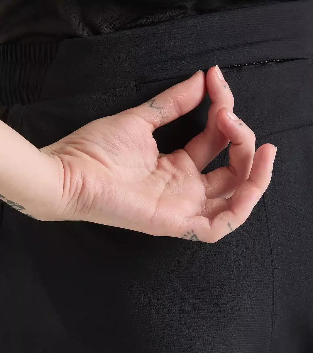 Mesh-Einsätze an den Seiten und Seitenschlitze regulieren die Körpertemperatur; die diskrete Rückentasche bietet den nötigen Platz, um wichtige Dinge mitzunehmen