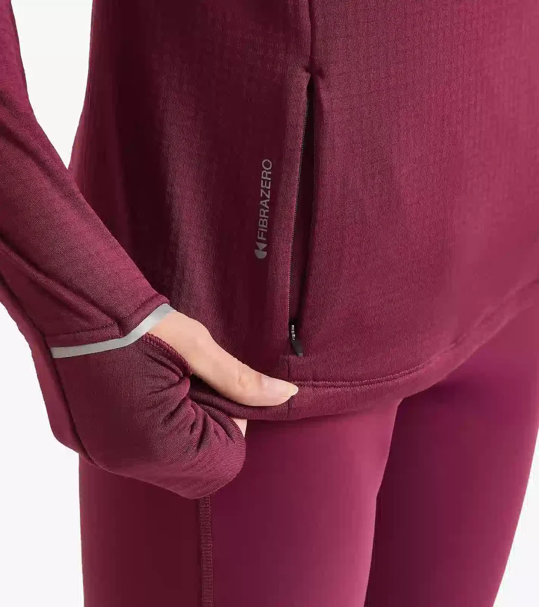 Nur die wesentlichen Details: Daumenschlaufen an den Ärmelbündchen, Smartwatch-Fenster, Reißverschlusstaschen. Und für Trainingseinheiten am Abend sorgen reflektierende Akzente für zusätzliche Sichtbarkeit.