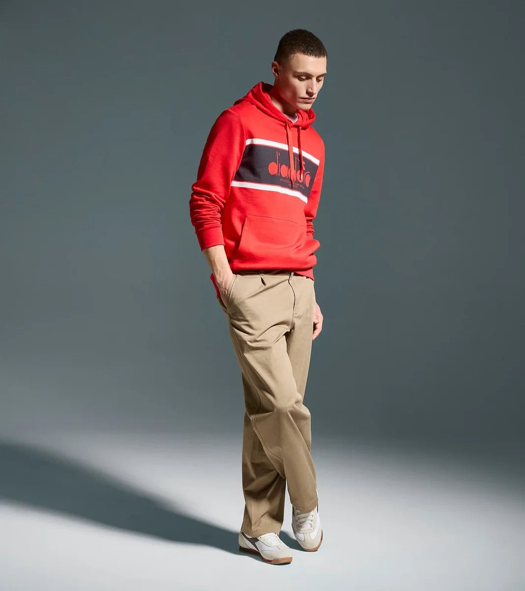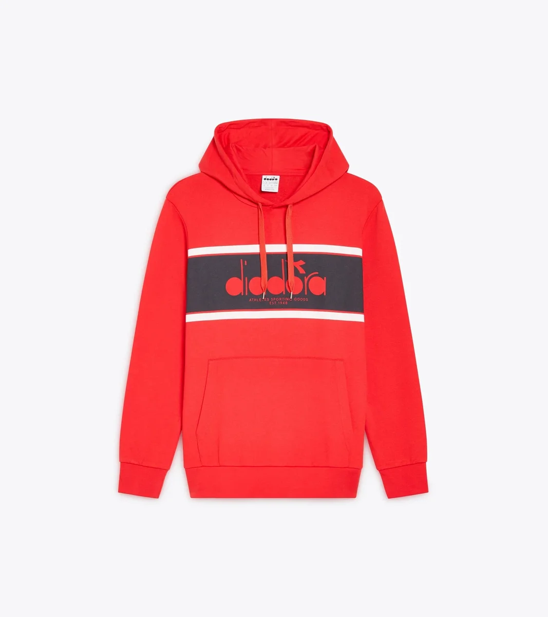 Praktisch, vielseitig, praktisch ein Passepartout. Mit seinem Color-Block-Design und dem kontrastierenden Logo ist der Hoodie Logo ein Kapuzenpullover, der zu jeder Gelegenheit passt: vom Spiel bis zum Konzert, vom Faulenzen zu Hause bis zum geschäftigen Tag voller Besorgungen, wenn Sie sich einfach nur pure Bequemlichkeit wünschen. Er besteht aus 100 % 320-Gramm-French-Terry-Baumwolle und ist der Inbegriff von Komfort.