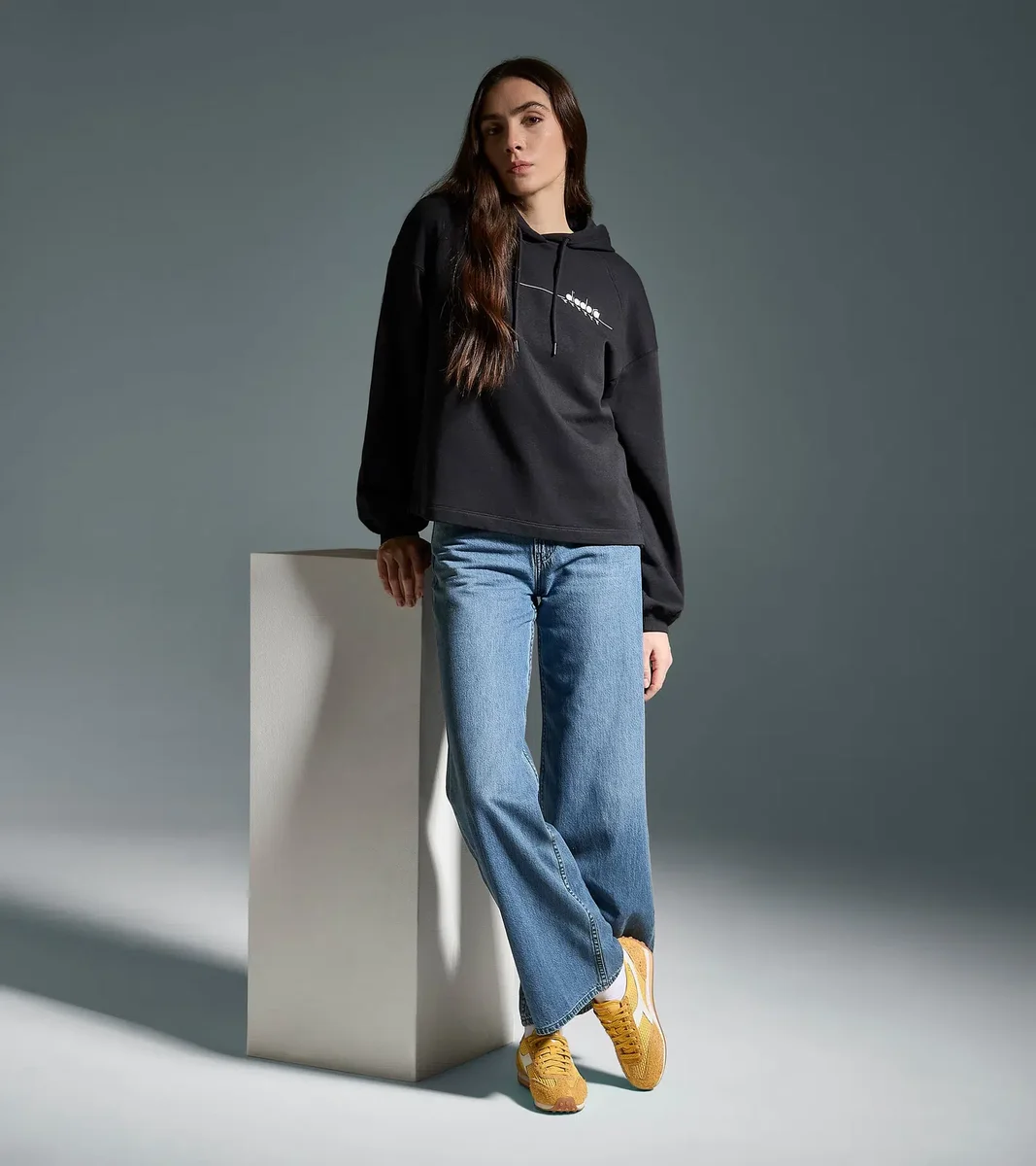 Dieser Hoodie aus dickem, weichem French Terry-Baumwollstoff ist das ultimative Komfortteil für Ihre Garderobe. Mit seinen essenziellen Farben und dem Diadora-Logo auf der Brust ist er die perfekte Mischung aus minimalistischem Stil, der sich mühelos mit allem kombinieren lässt.
