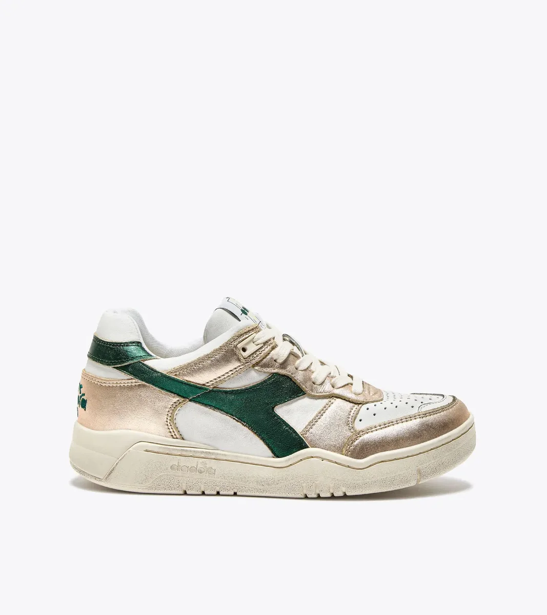 Ein typisches Detail der Diadora Heritage Sneakers: Die Stonewash-Behandlung macht das Leder weicher.