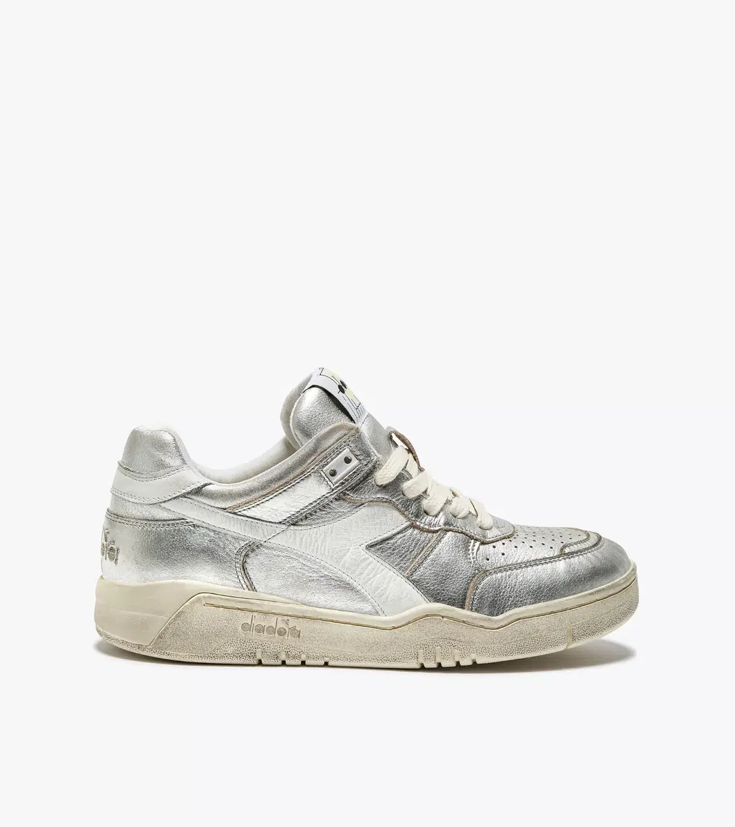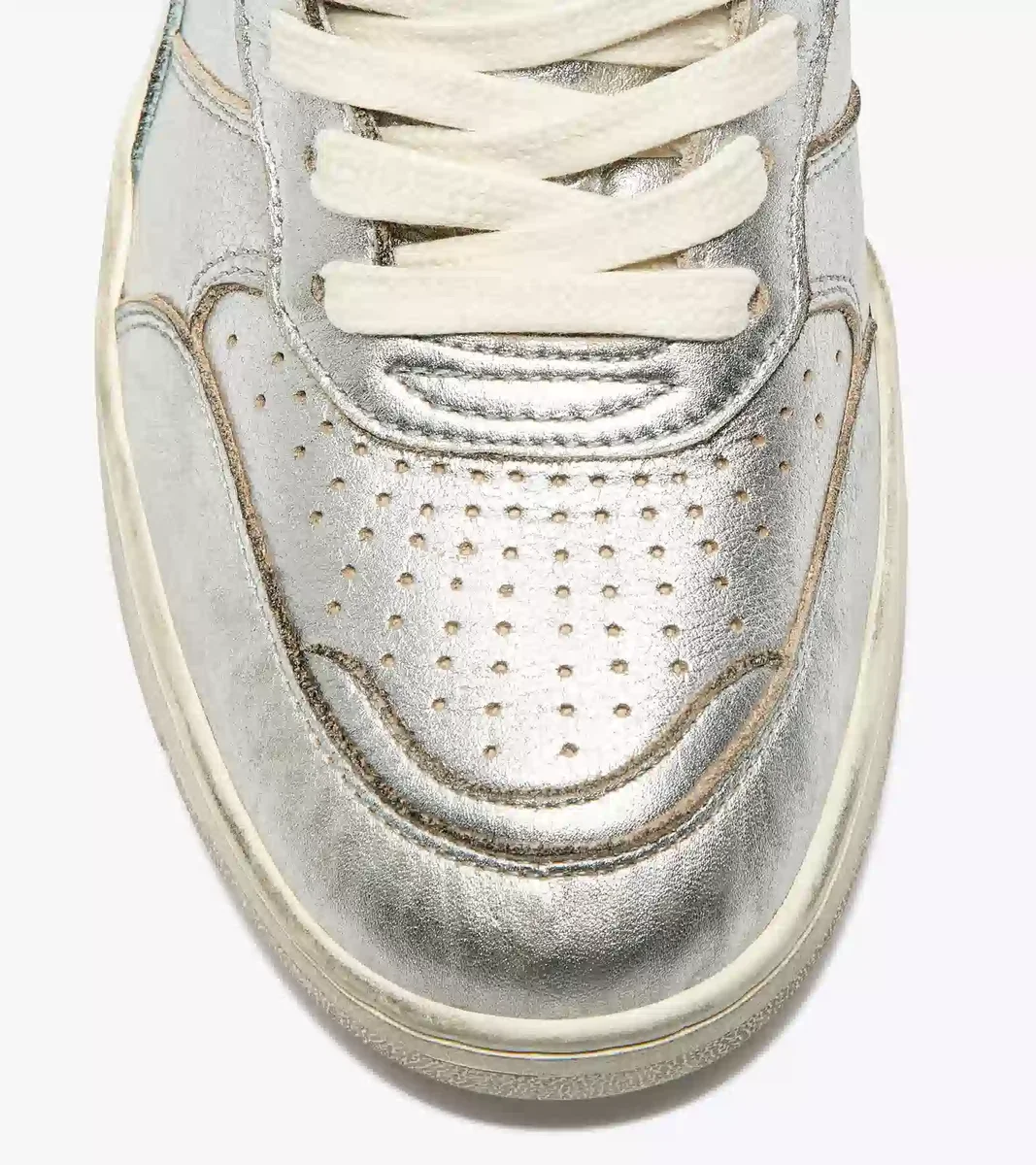 B.560 Metal WN: die sensationellste Version dieses Sneakers. Von den goldenen Jahren des Tennis zu hochwertigem, goldlaminiertem Leder. Um seine geschichtsträchtige Vergangenheit noch stärker zu betonen, wurde er einer Stonewash-Behandlung und einer leichten Wachsbehandlung unterzogen, die seine über Jahrzehnte entwickelten Eigenschaften unterstreichen.
