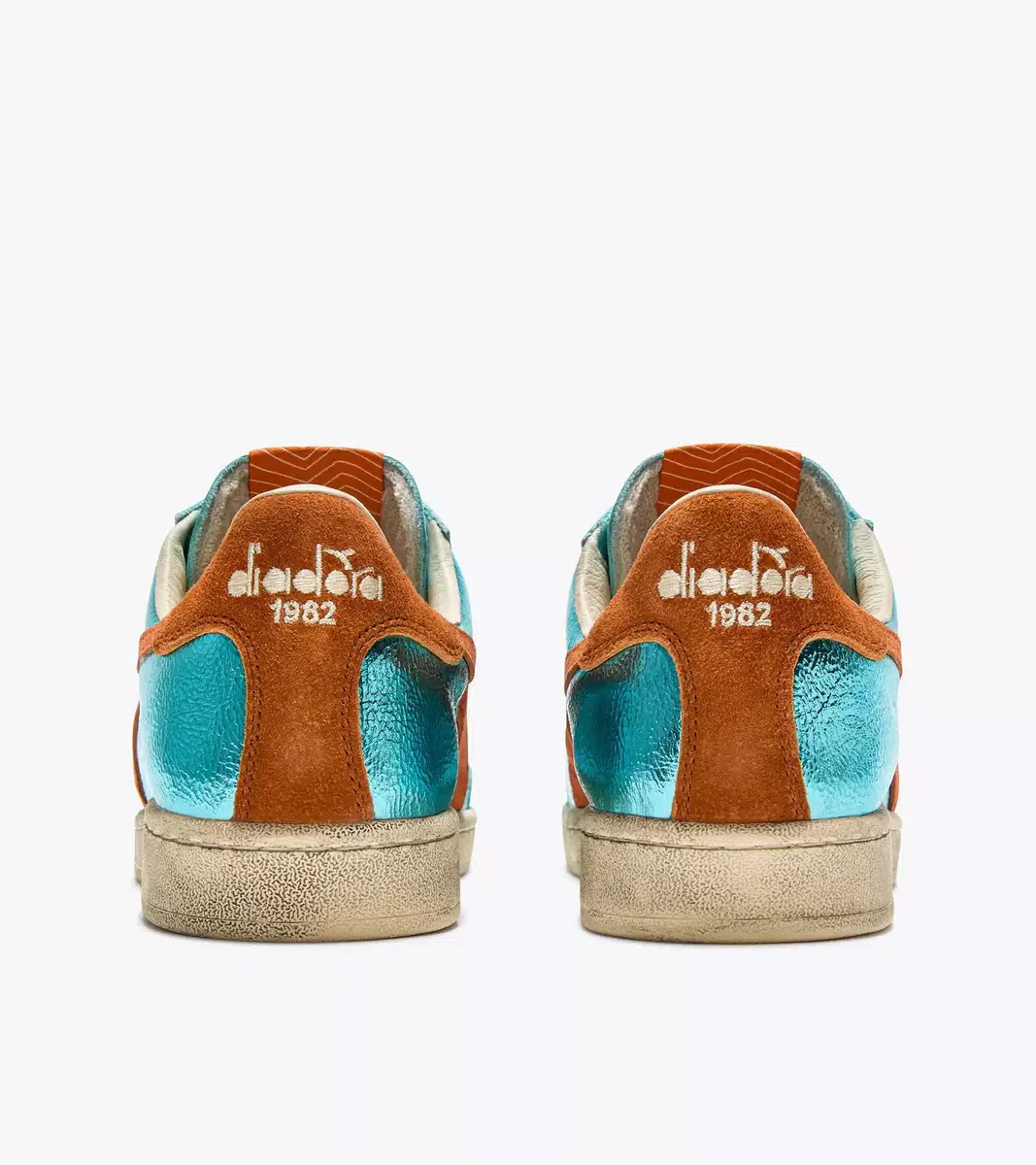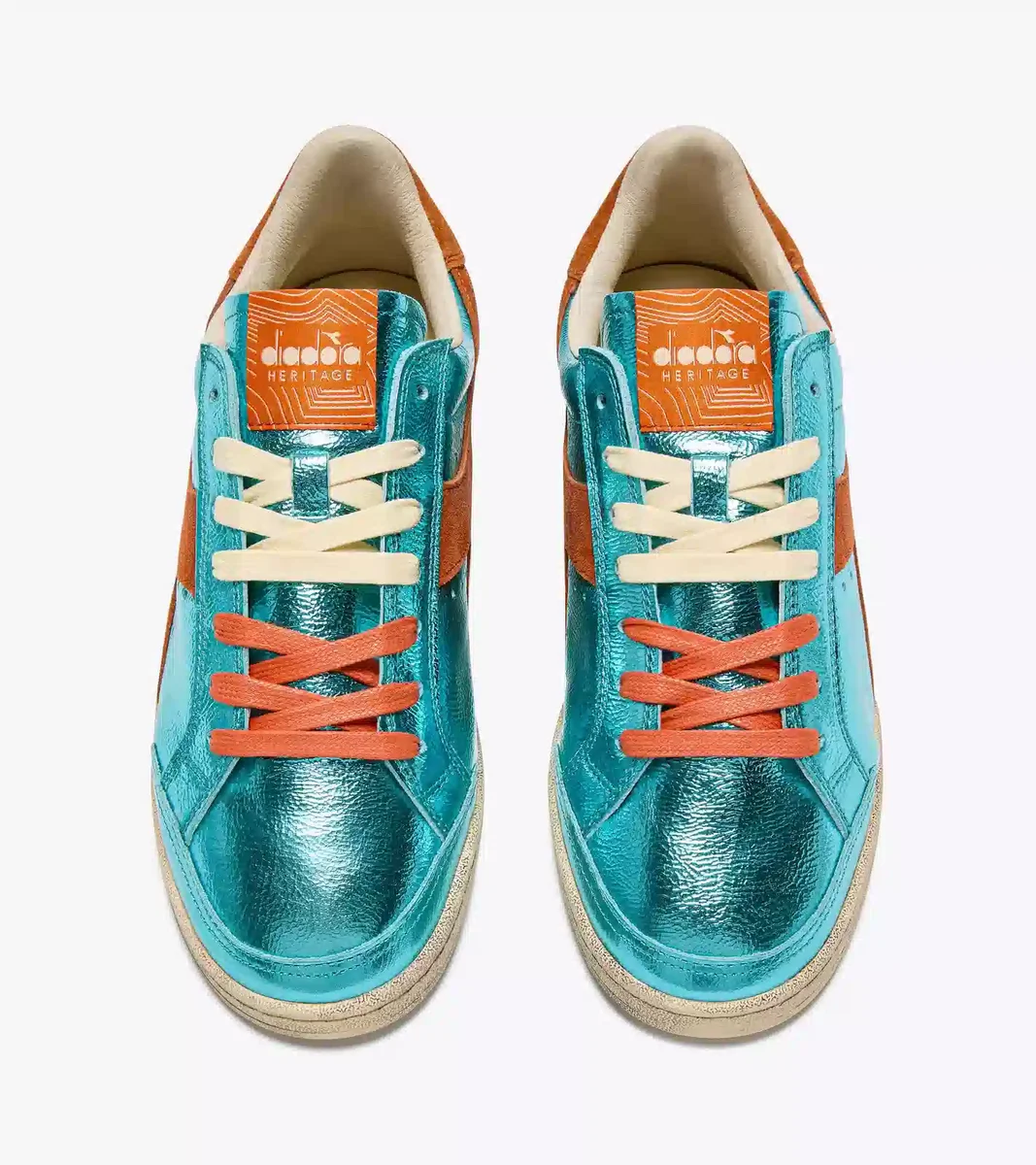 Prestige Metal Used ist aus laminiertem Leder mit Details aus Schweinsleder gefertigt. Die Stonewash-Behandlung macht das Material weich, während ein leichtes Wachsfinish dem Schuh seinen unverwechselbaren Used-Look verleiht – ein Markenzeichen der Diadora Heritage-Linie.
