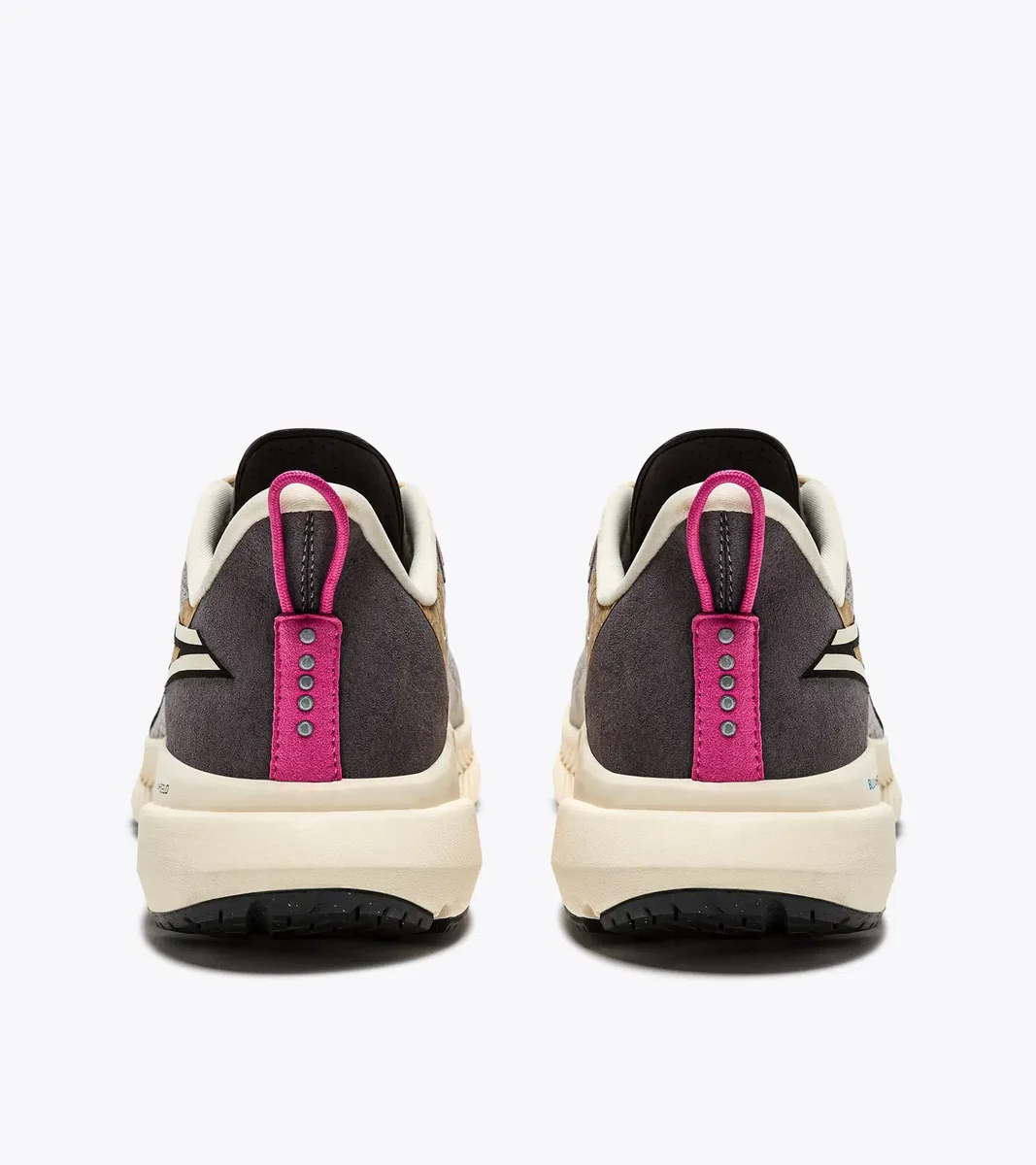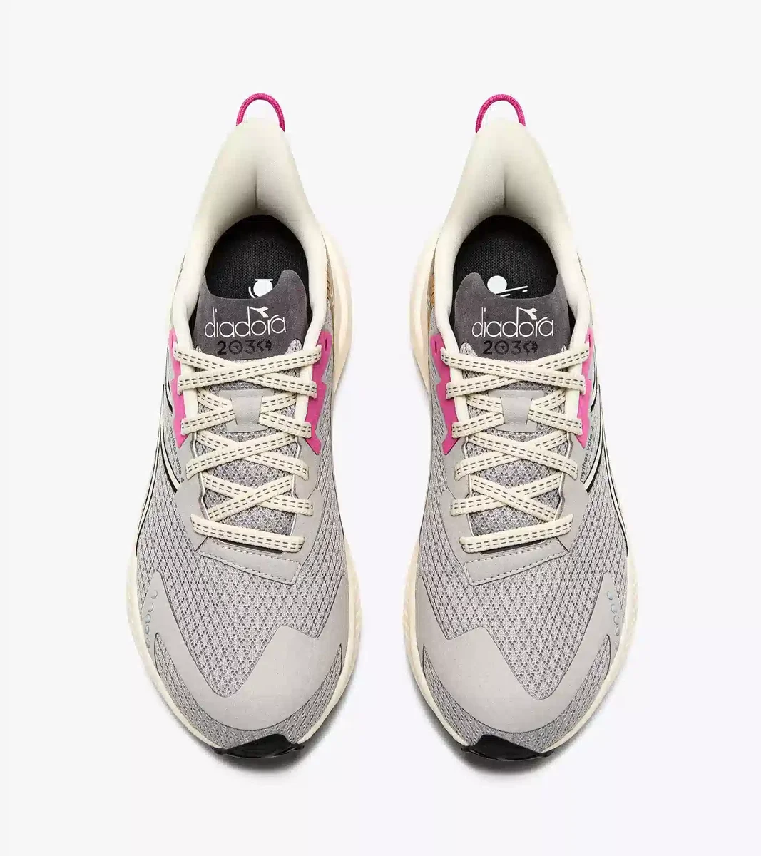 Der stabile, leichte und schützende Volo kombiniert zwei Technologien von Diadora: Anima, die für einen leichten und reaktionsfreudigen Schuh sorgt, und die Blushield-Technologie, die die Asymmetrie des Fußes ausgleicht und so die Effizienz beim Laufen verbessert. Darüber hinaus verfügt er über einen für Damenschuhe üblichen 9-mm-Absatz.