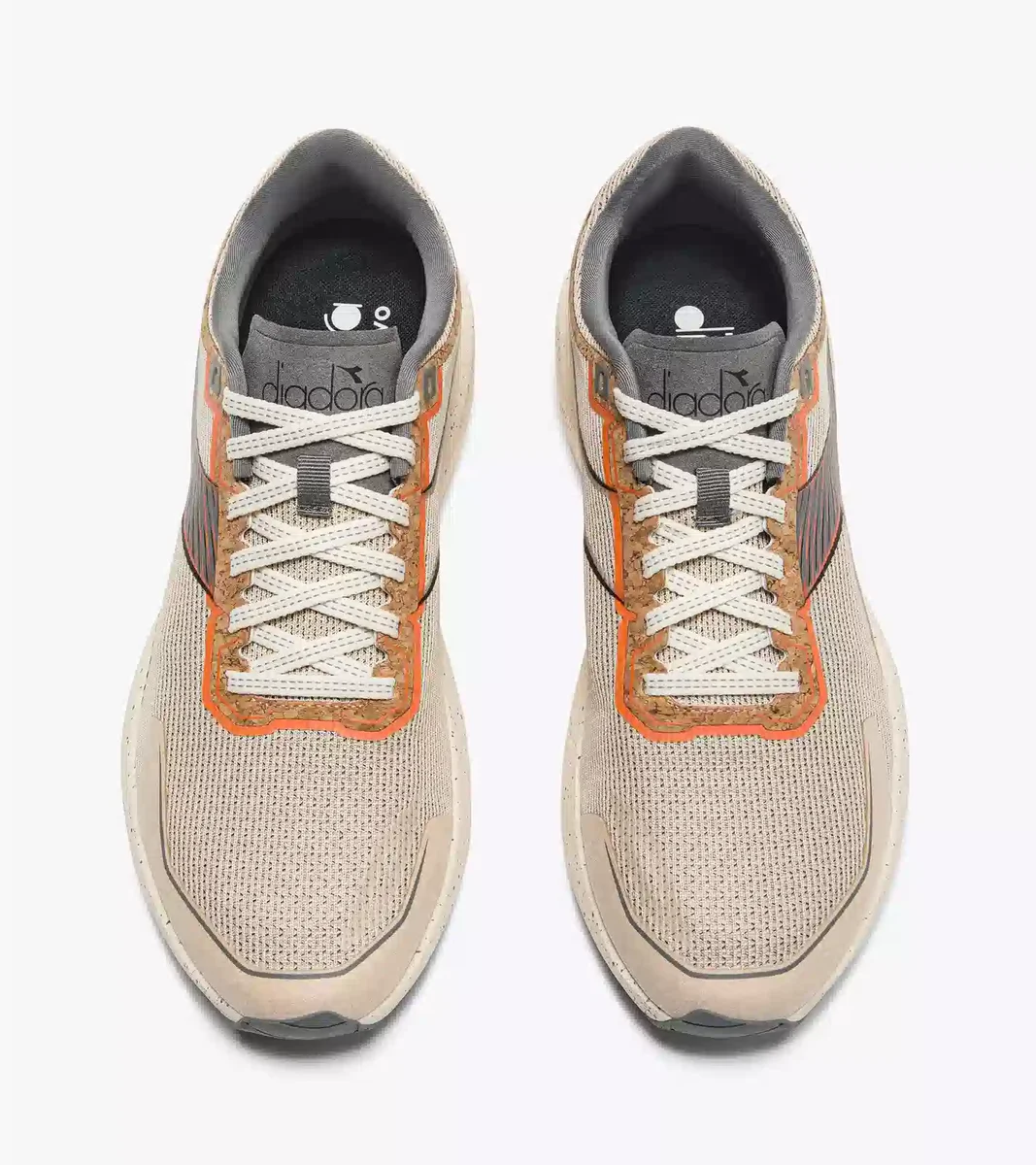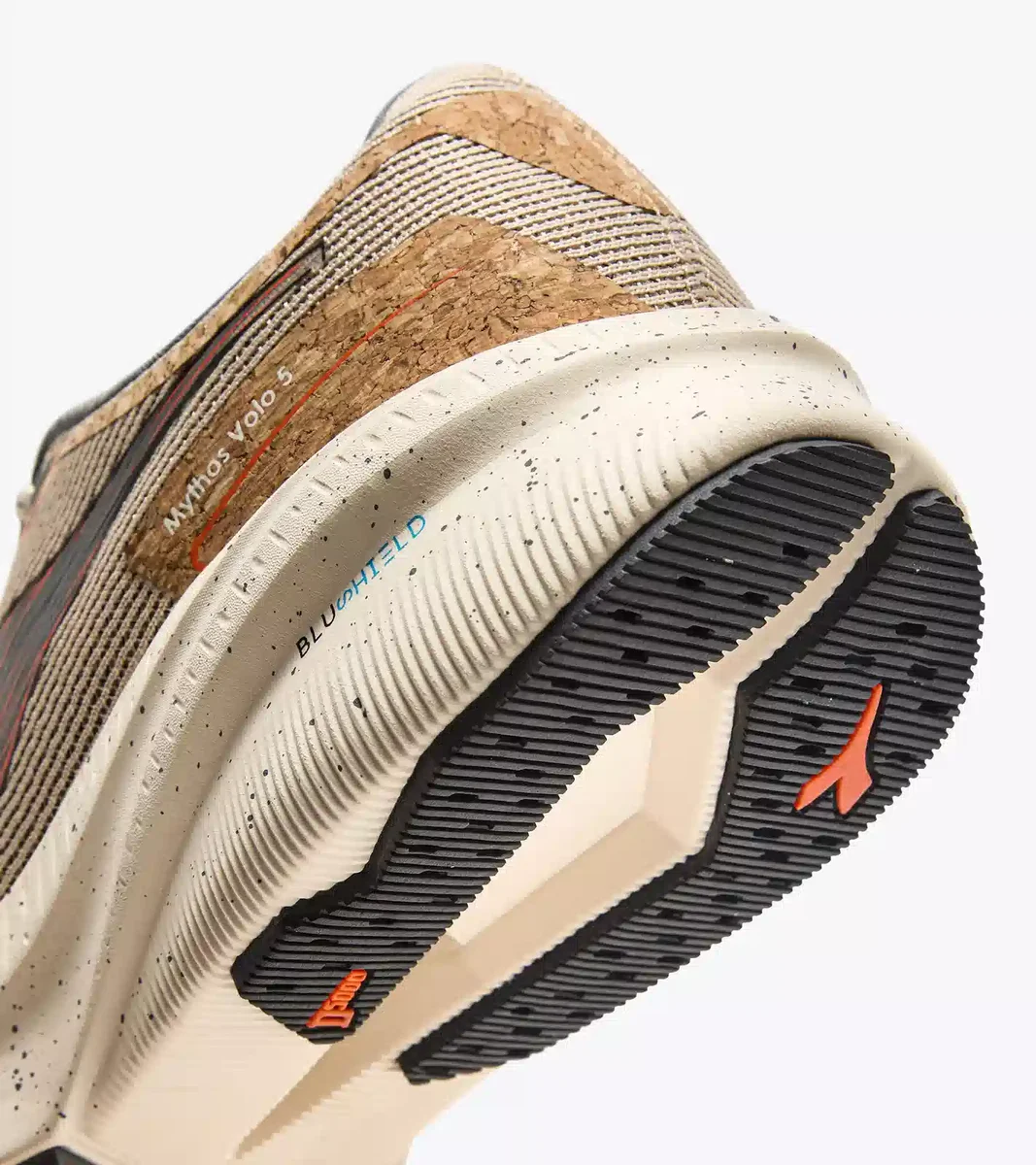 Der Mythos Blushield Volo 5 W 2030 ist Teil des Diadora 2030-Projekts. Das Obermaterial besteht aus recyceltem Polyester-Mesh und neuem Polyester; die Zwischensohle besteht zu 40 % aus teilweise biosynthetisiertem EVA. Die Schnürsenkel bestehen zu 100 % aus recyceltem Polyester.