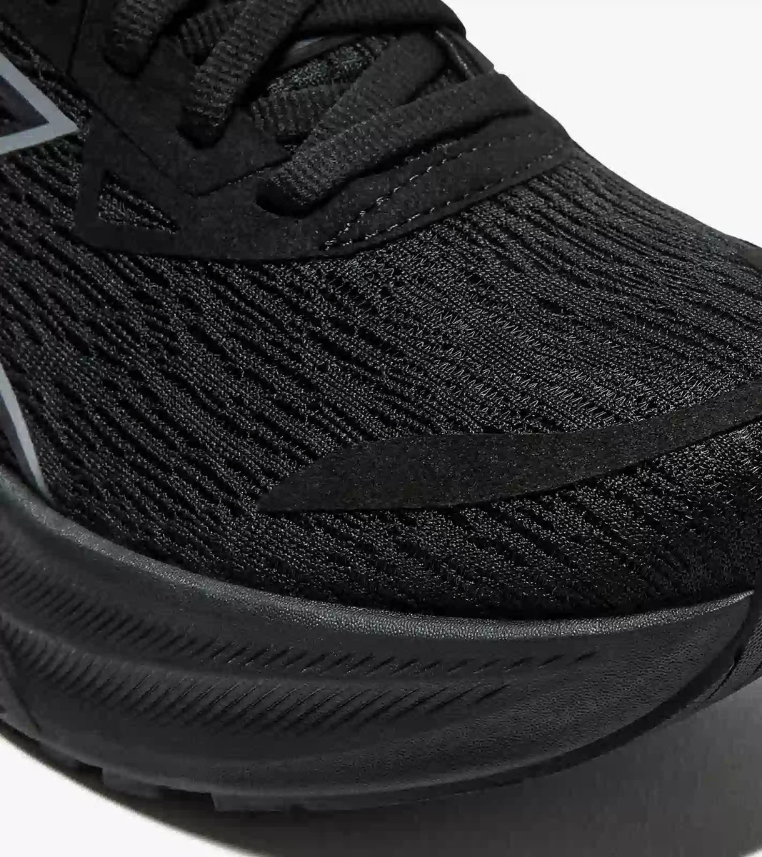 Das Designteam arbeitete an einem neuen, asymmetrischen Design der Mittelsohle. Zwei externe Aushöhlungen und eine abgeflachte Innenkonstruktion tragen zu einer verbesserten Stabilität und Rotationskontrolle bei, ergänzt durch einen weniger konkaven Innenbereich von der Ferse bis zur Innenseite. Der geringe 5-mm-Absatz und das raffinierte Obermaterialdesign machen ihn zum perfekten Begleiter für lange Läufe und das tägliche Training. Die Zunge wurde neu gestaltet und ist seitlich mit elastischem Mesh in der Futterkonstruktion gesichert, um ein Verdrehen zu verhindern und eine bequeme Passform ohne Einbußen bei der Flexibilität zu gewährleisten. Die Ferse wurde um 9 mm, der Mittelfuß um 13 mm und der Vorfuß um 5 mm verbreitert. Die Innenlänge der Fersen-Außensohlengummisohle auf der Innenseite wurde ebenfalls von 6 cm auf 11 cm erhöht, was für verbesserte Stabilität und eine bessere Rotationskontrolle sorgt.