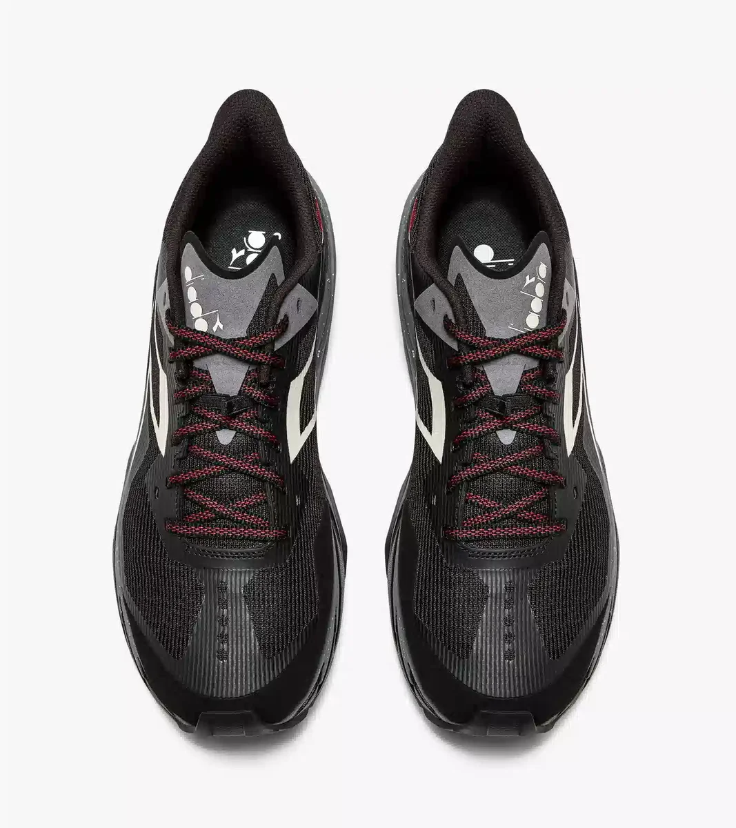Das Sohlendesign ahmt die Anatomie des V-förmigen Steinbockhufs nach. Hartes Gummi an den Seiten sorgt für Stabilität und Grip. Weiches, griffiges Gummi in der Mitte. Anima-Technologie Ein Kraftpaket in Sachen Dämpfung, Reaktionsfähigkeit und Leichtigkeit. Anima ist die Diadora-Technologie, die entwickelt wurde, um die Reaktionsfähigkeit der Zwischensohle um 30 % zu erhöhen und gleichzeitig ihr Gewicht um 20 % zu reduzieren.