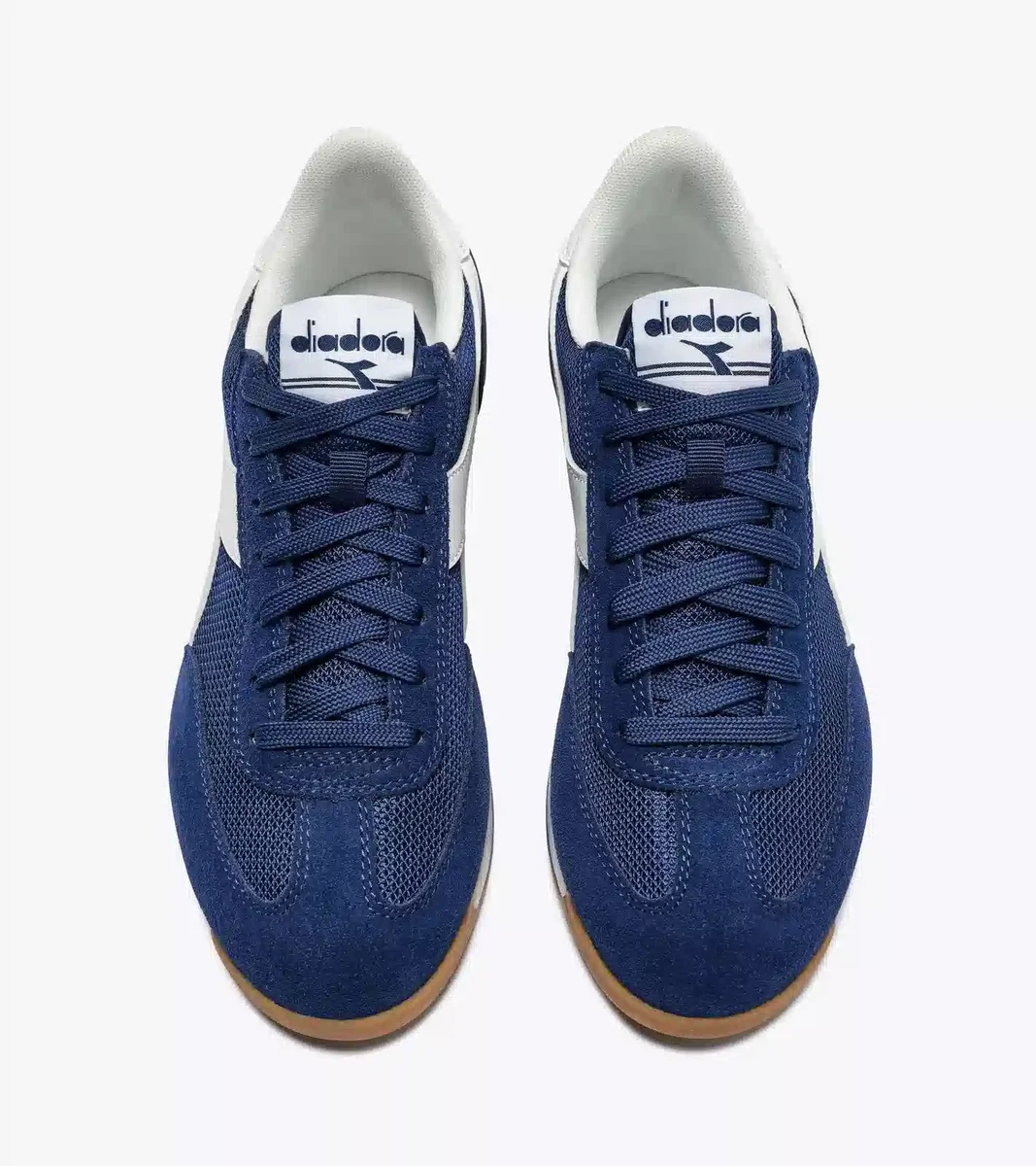 Cross schlägt eine Brücke zwischen den Epochen und verbindet klassische Low-Profile-Performance-Schuhe mit moderner Sneaker-Kultur. Von der schlanken Sohle bis zur T-Zehenkappe vermittelt das Design aus Wildleder und Stoff einen Retro-Look, bleibt aber fest in der heutigen Sneaker-Szene verankert. Eine Verbeugung vor der Vergangenheit, mit einem Fuß fest in der Gegenwart.