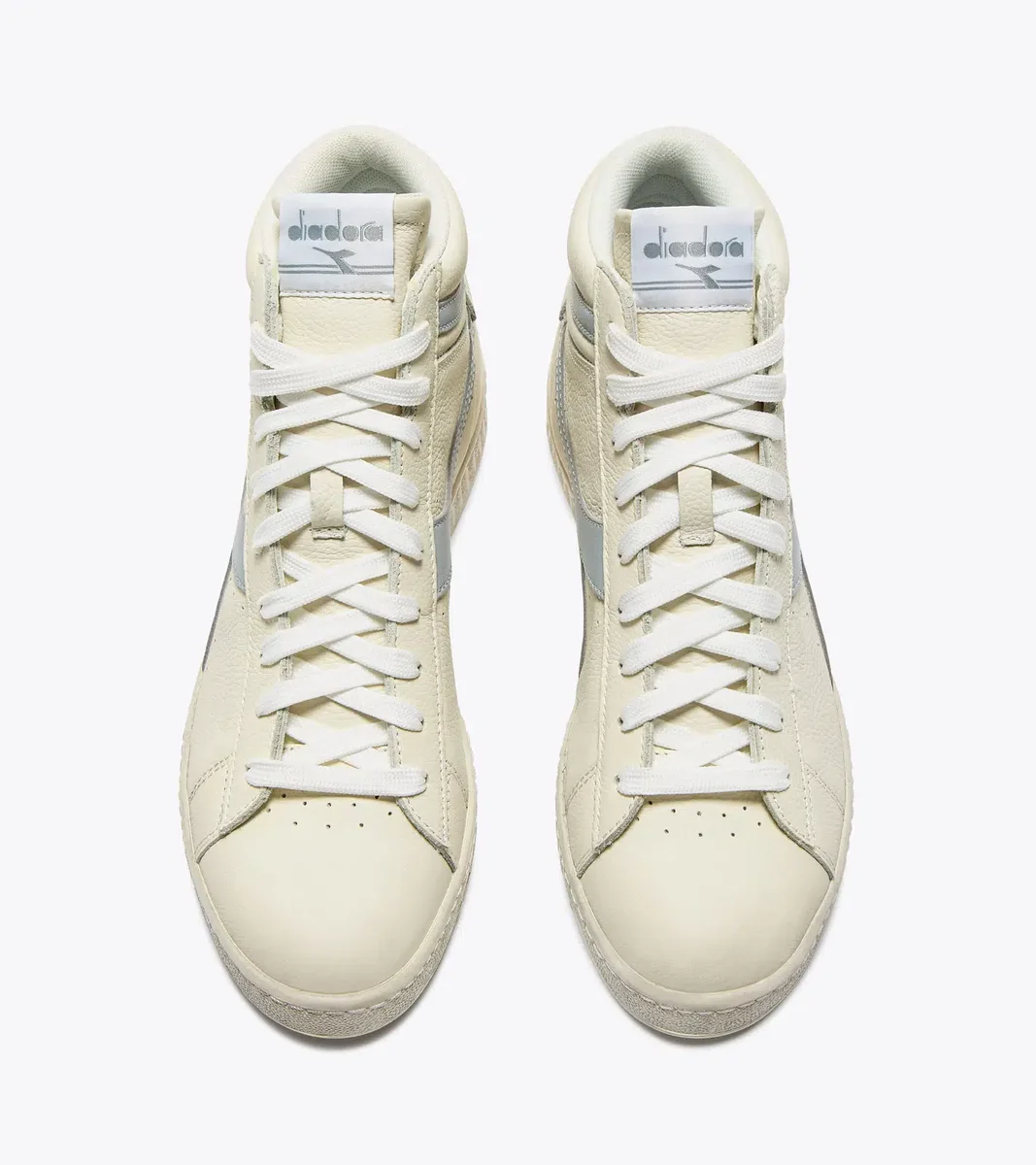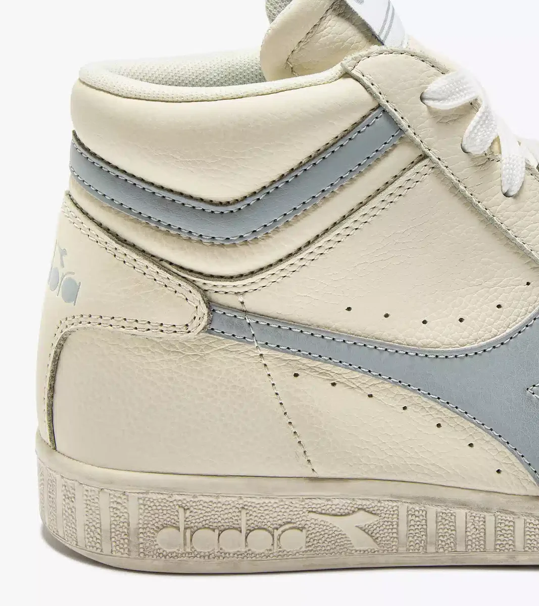 Das ikonische Modell Game L High ist aus hochwertigem Leder mit Wachsbehandlung gefertigt. Wie alle Ikonen von Diadora besticht dieser Schuh durch seine sportliche Ästhetik und seinen zeitlosen Stil, der zu jedem Anlass passt. Unisex-Modell mit kontrastierendem 5-Ball-Logo und Fregio-Detail.