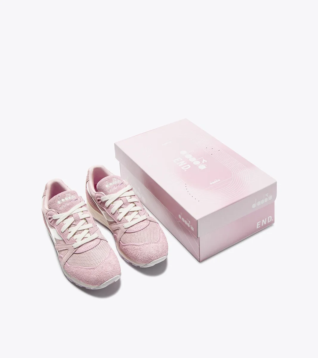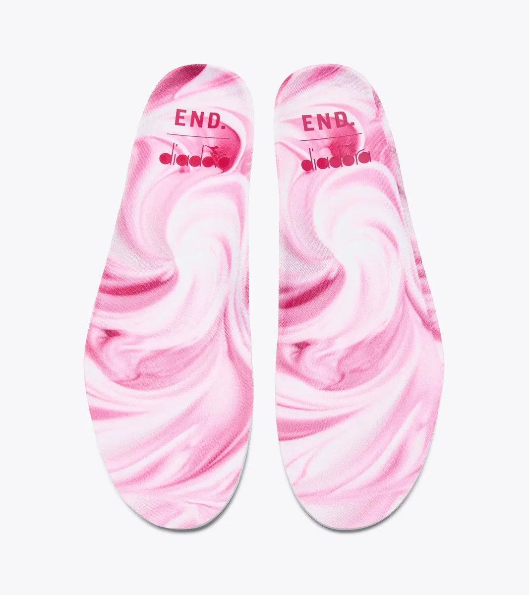 Inspiriert von den Farben, die entstehen, wenn Erdbeeren und Sahne kombiniert werden, verbindet der Stil die Laufesthetik der 90er Jahre mit einer hochwertigen Verarbeitung. Der in Italien von Hand gefertigte N9000 ist mit subtilen Details verziert, darunter glänzende weiße PVC-beschichtete Seitenstreifen, eine durchsichtige Außensohle mit maßgeschneidertem END.-Branding und ein Obermaterial mit 3M-Paspelierung. Das Diadora-Branding prangt stolz auf der Zunge, während die END.-Stickerei an der Ferse den Charme einer limitierten Auflage unterstreicht. Eine bedruckte Innensohle rundet den Look ab und greift das Erdbeer-Thema auf. Die Sneaker werden in einem Schuhkarton mit Co-Branding geliefert.
