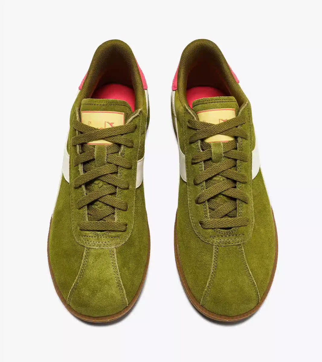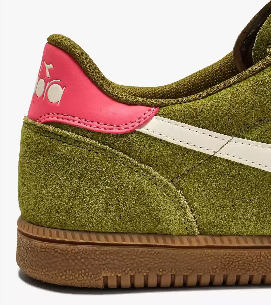 Terrassenstil der 1980er Jahre. Wie sein Pendant, der Trainer, stammt auch der Tokyo Sneaker aus den Archiven von Diadora aus den 80er Jahren und verfügt über die ikonische dicke Gummisohle, die ursprünglich für Handballschuhe dieser Zeit entworfen wurde.