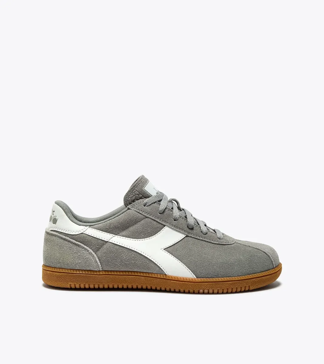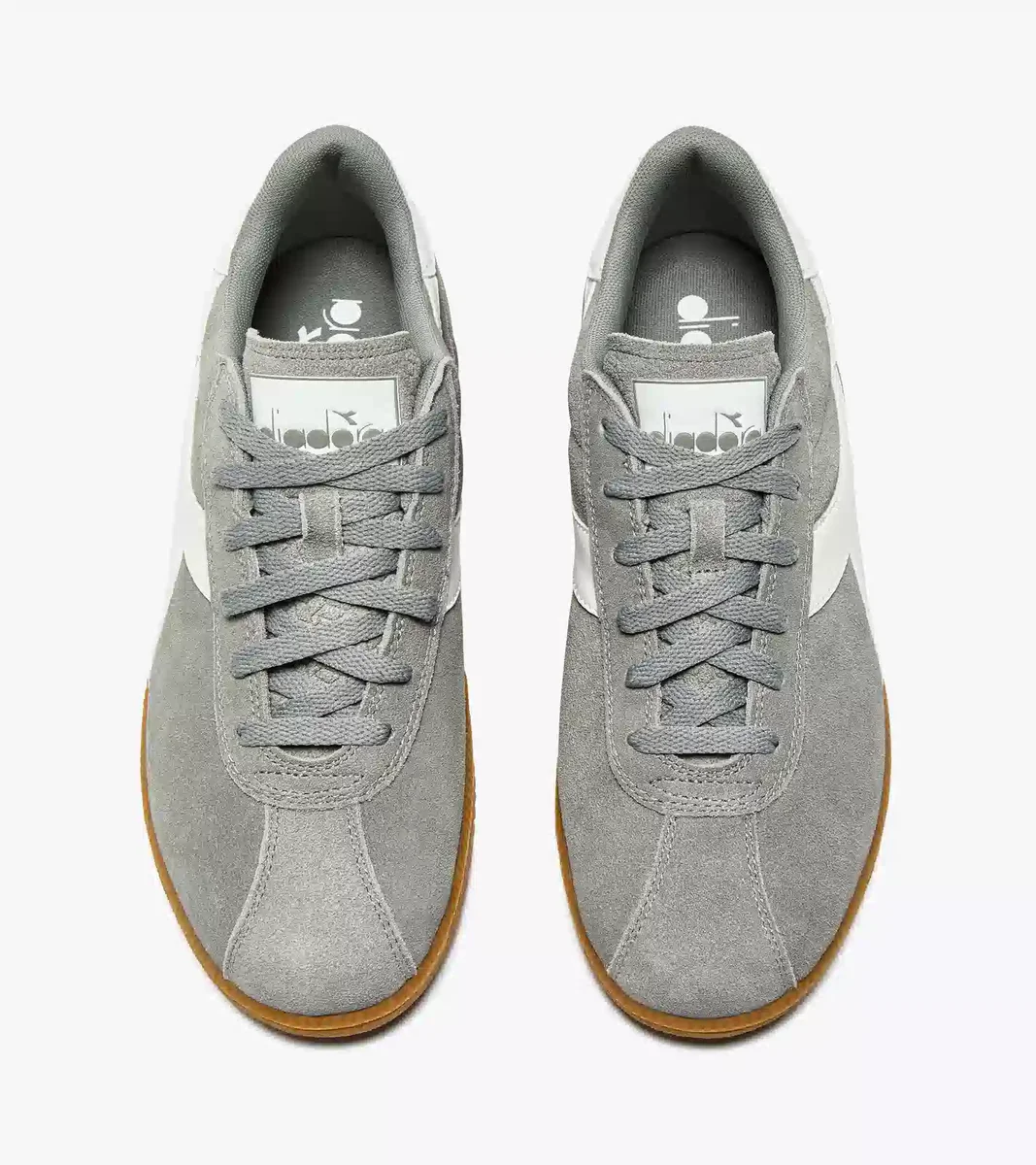Terrassenstil der 1980er Jahre. Wie sein Pendant, der Trainer, stammt auch der Tokyo Sneaker aus den Archiven von Diadora aus den 80er Jahren und verfügt über die ikonische dicke Gummisohle, die ursprünglich für Handballschuhe dieser Zeit entworfen wurde.