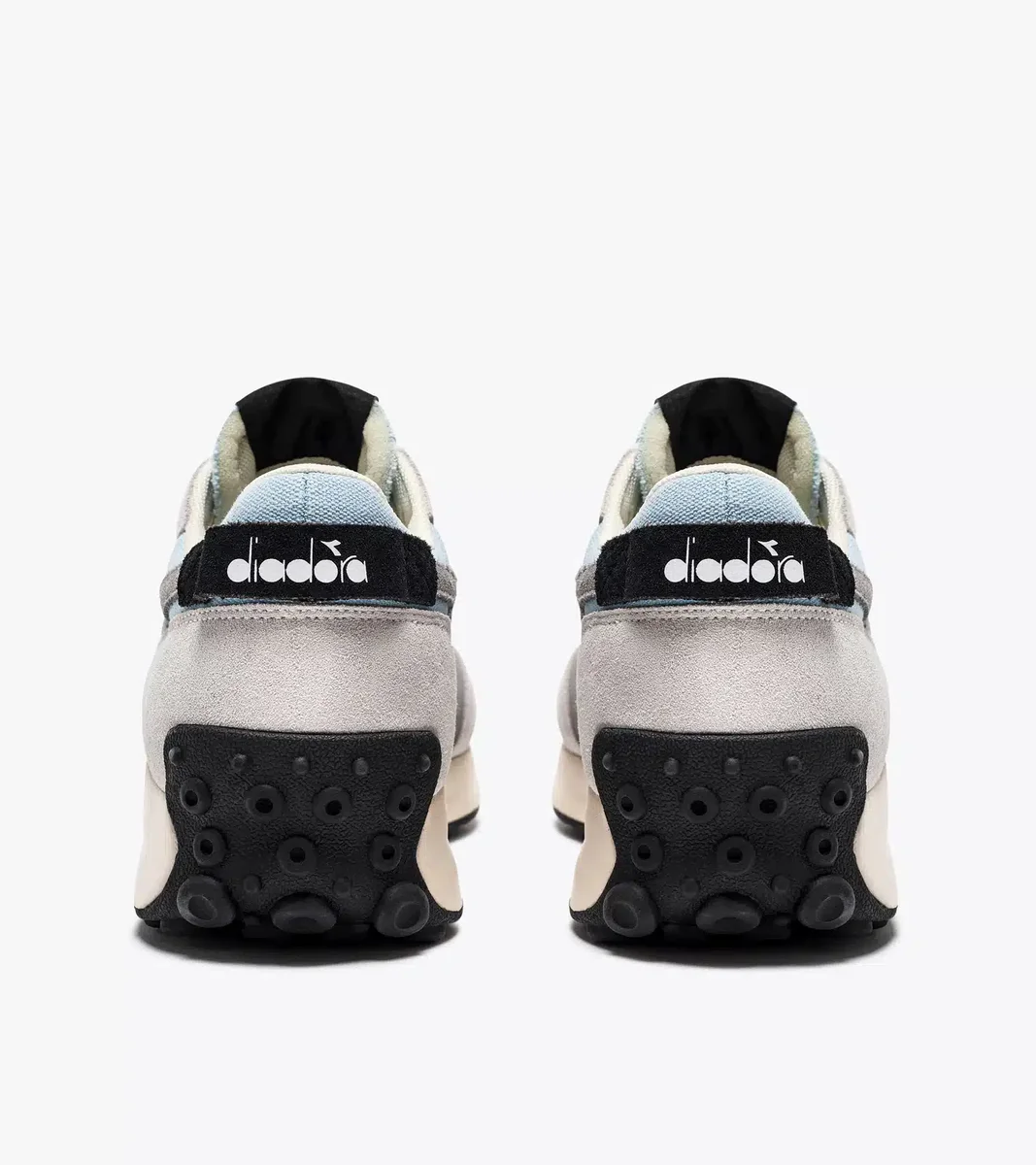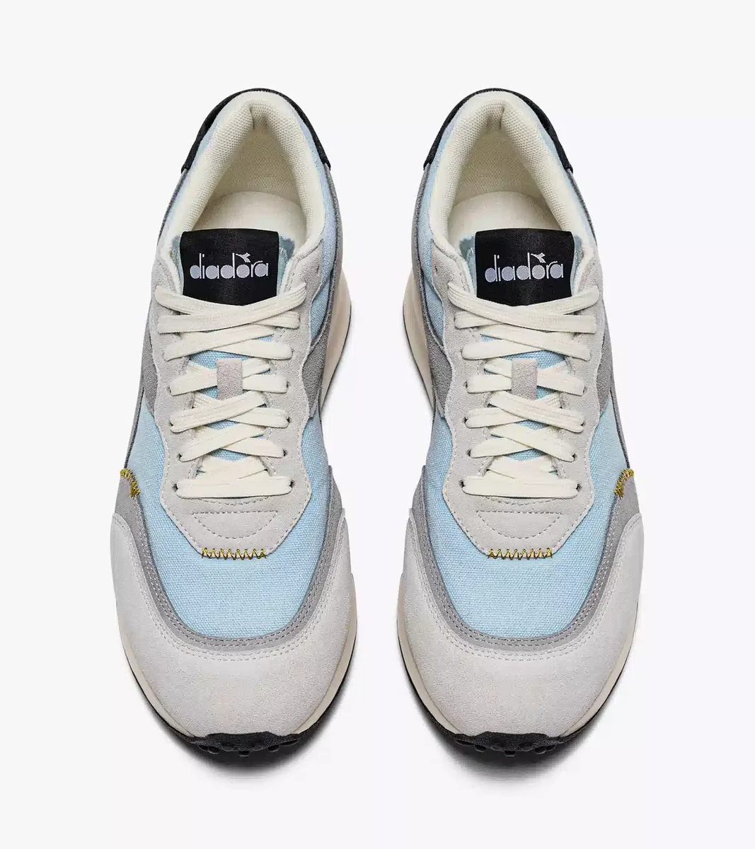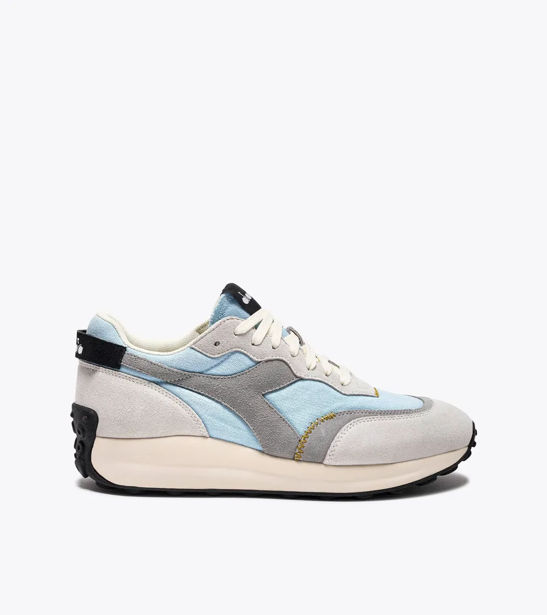 Race Suede SW, ein klassischer Laufschuh aus den 80er Jahren, feiert ein Comeback, um das sportliche Erbe von Diadora zu würdigen. Die Sohle ist eine originalgetreue Nachbildung des Originals, während das Obermaterial in einem zeitgemäßeren Stil neu gestaltet wurde. Der Canvas-Stoff an den Seiten und am Vorderblatt ist gewachst und erhält dadurch einen faszinierenden Used-Look.