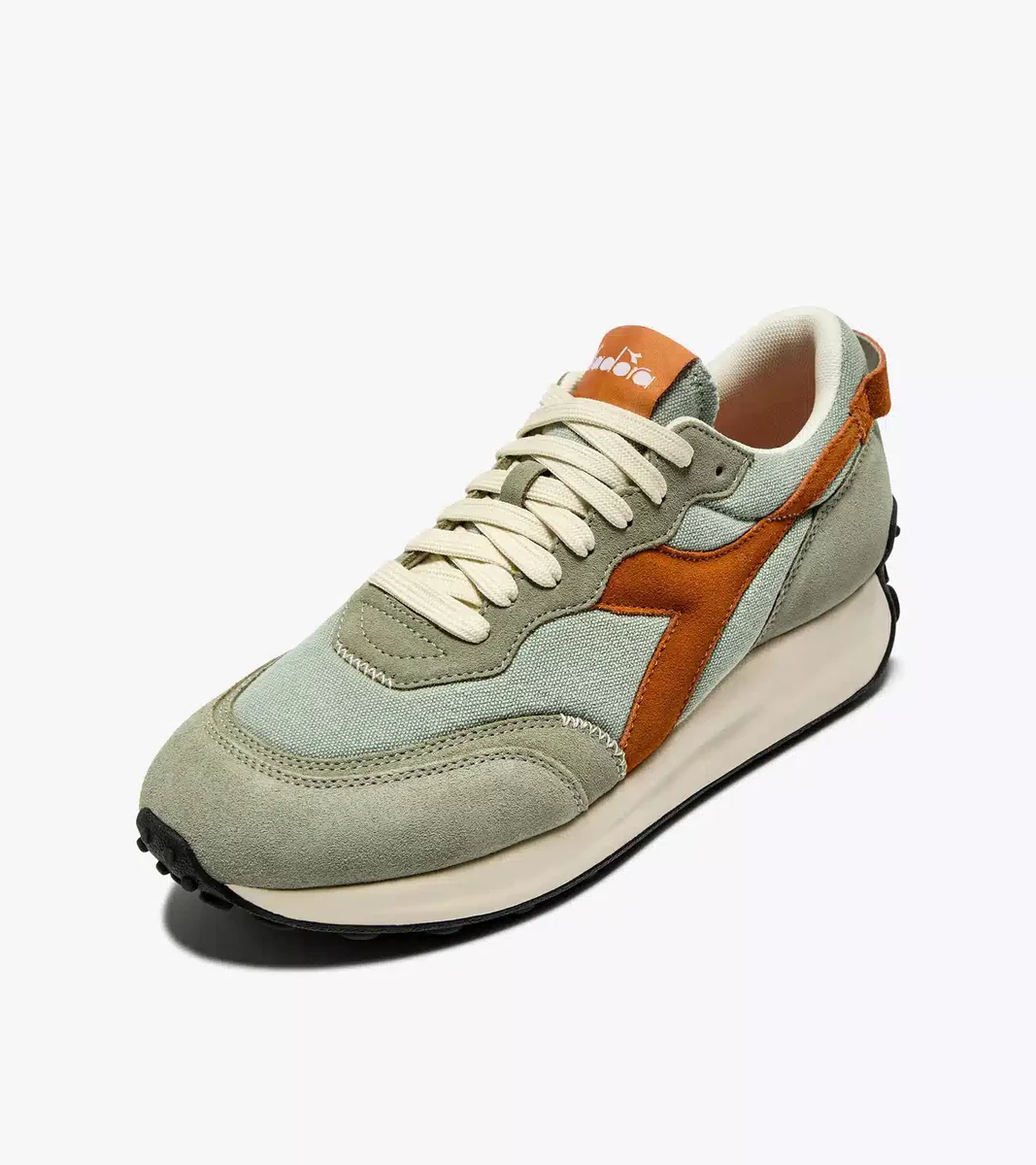 Race Suede SW, ein klassischer Laufschuh aus den 80er Jahren, feiert ein Comeback, um das sportliche Erbe von Diadora zu würdigen. Die Sohle ist eine originalgetreue Nachbildung des Originals, während das Obermaterial in einem zeitgemäßeren Stil neu gestaltet wurde. Der Canvas-Stoff an den Seiten und am Vorderblatt ist gewachst und erhält dadurch einen faszinierenden Used-Look.