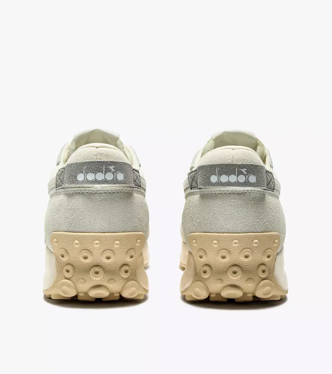 Race Suede SW, ein klassischer Laufschuh aus den 80er Jahren, feiert ein Comeback, um das sportliche Erbe von Diadora zu würdigen. Die Sohle ist eine originalgetreue Nachbildung des Originals, während das Obermaterial in einem zeitgemäßeren Stil neu gestaltet wurde. Der Canvas-Stoff an den Seiten und am Vorderblatt ist gewachst und erhält dadurch einen faszinierenden Used-Look.