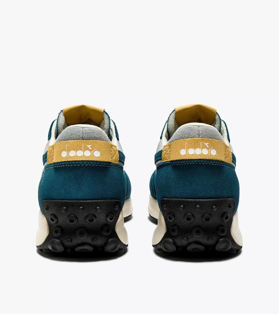 Race Suede SW, ein klassischer Laufschuh aus den 80er Jahren, feiert ein Comeback, um das sportliche Erbe von Diadora zu würdigen. Die Sohle ist eine originalgetreue Nachbildung des Originals, während das Obermaterial in einem zeitgemäßeren Stil neu gestaltet wurde. Der Canvas-Stoff an den Seiten und am Vorderblatt ist gewachst und erhält dadurch einen faszinierenden Used-Look.