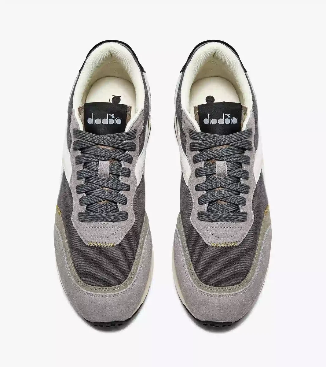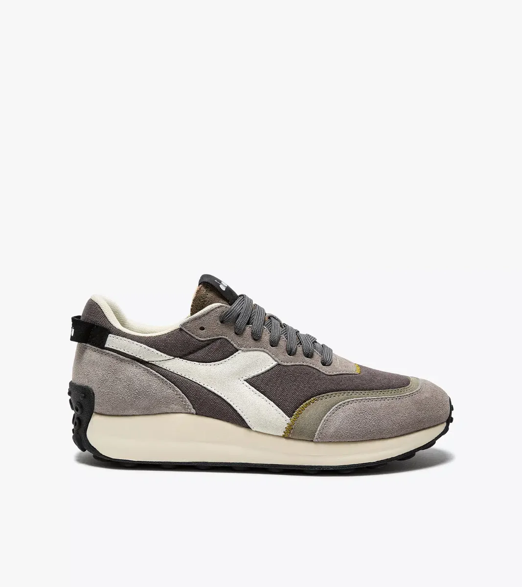 Race Suede SW, ein klassischer Laufschuh aus den 80er Jahren, feiert ein Comeback, um das sportliche Erbe von Diadora zu würdigen. Die Sohle ist eine originalgetreue Nachbildung des Originals, während das Obermaterial in einem zeitgemäßeren Stil neu gestaltet wurde. Der Canvas-Stoff an den Seiten und am Vorderblatt ist gewachst und erhält dadurch einen faszinierenden Used-Look.