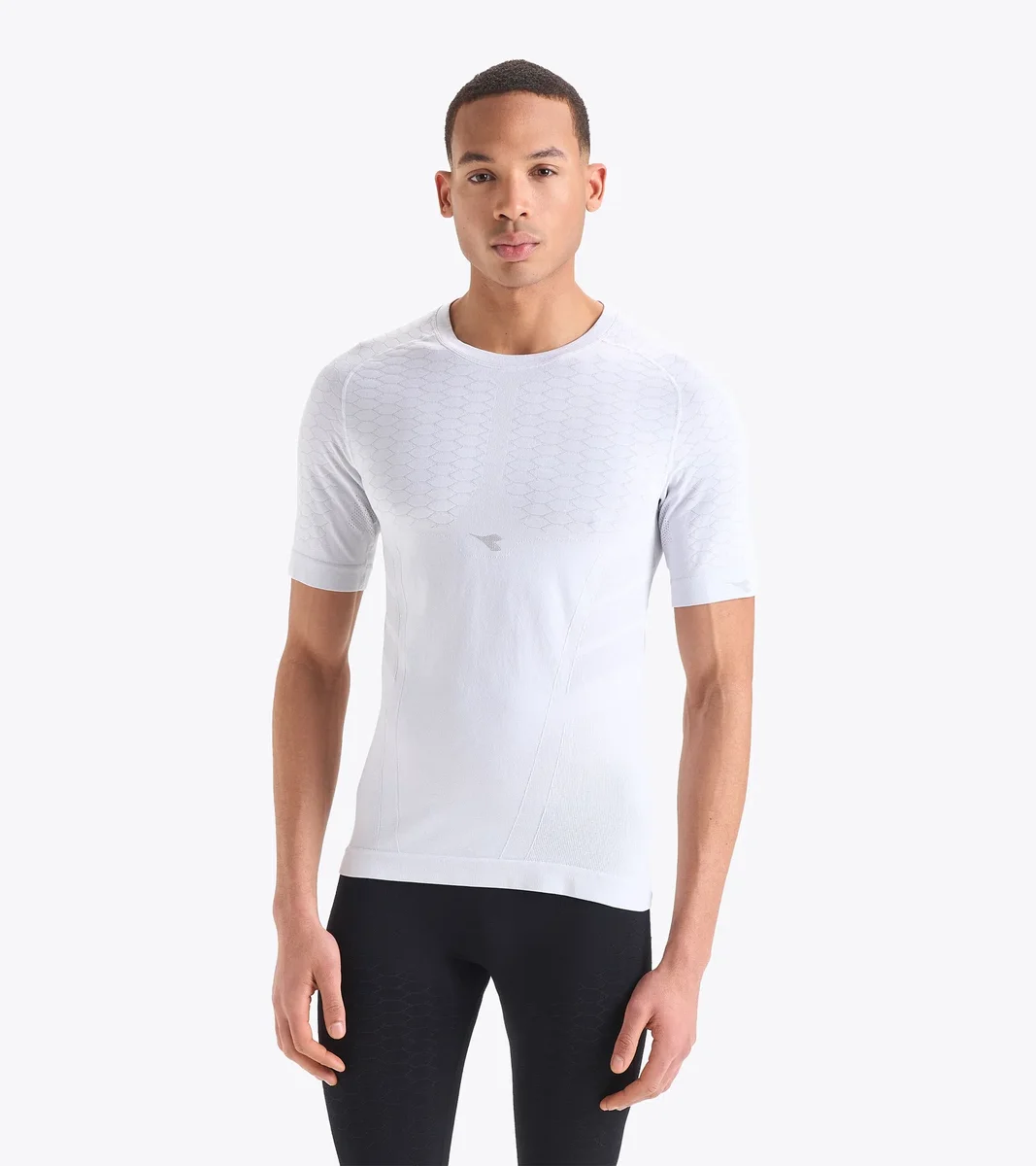 Geben Sie mit diesem T-Shirt alles, um auch bei den anspruchsvollsten Trainingseinheiten Höchstleistungen zu erbringen. Ein kurzärmeliges Shirt mit Rundhalsausschnitt aus einer weichen, leichten Mischung aus Polyamid und Polypropylen. Letzteres – Ton in Ton – hat die doppelte Funktion, den Körper trocken zu halten und die Logos hervorzuheben.Thermisches T-Shirt§Hergestellt in Italien