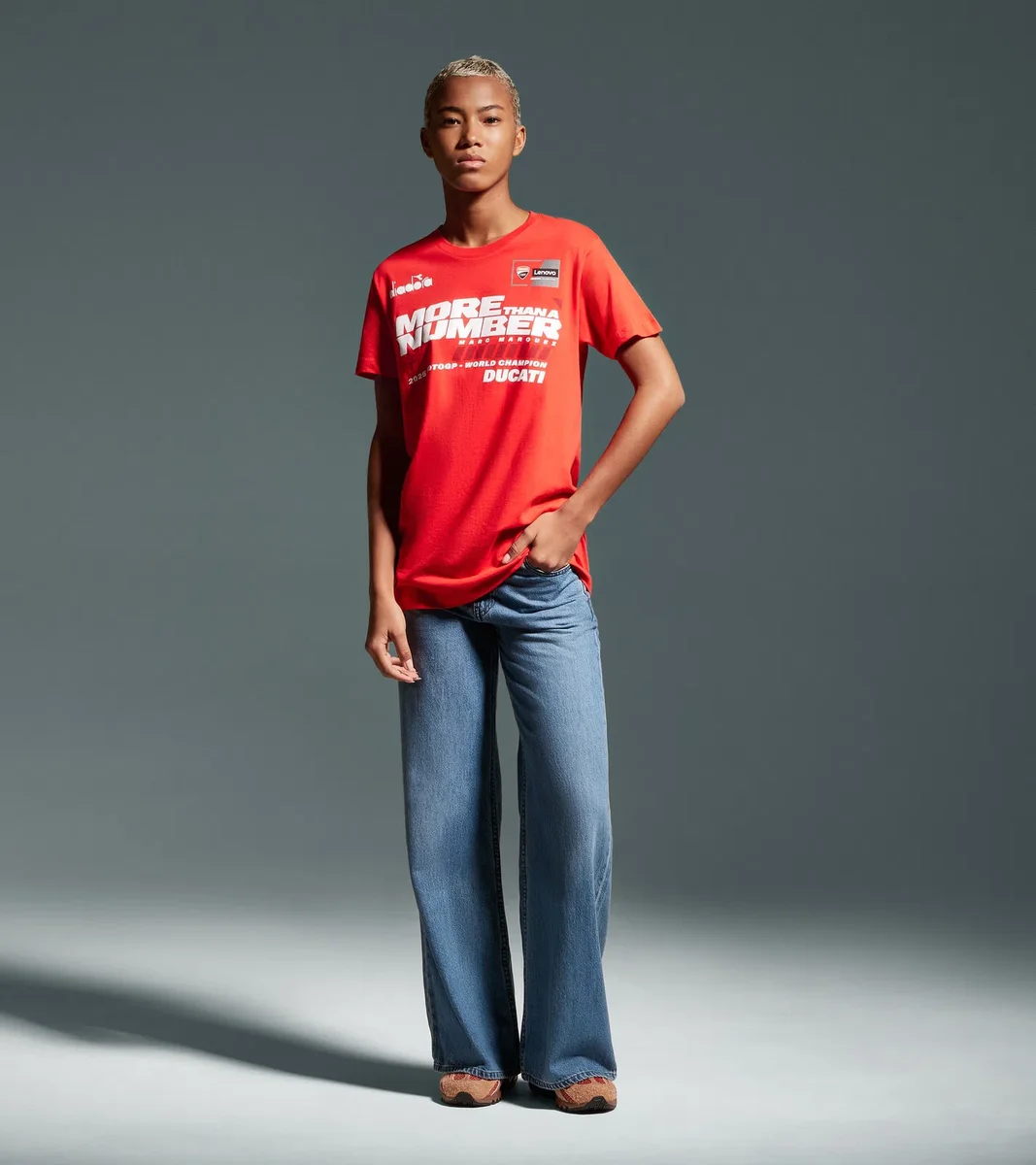 Eine Geschichte von Spitzenleistungen, Teamarbeit und Leidenschaft: Ducati Corse ist 25-facher MotoGP-Weltmeister. Ein rein italienischer Sieg, auf den Diadora als technischer Sponsor und langjähriger Unterstützer von Ducati stolz ist. Celebration T-Shirt in Ducati-Rot, aus 100 % Baumwolle, mit Aufdruck auf Vorder- und Rückseite.