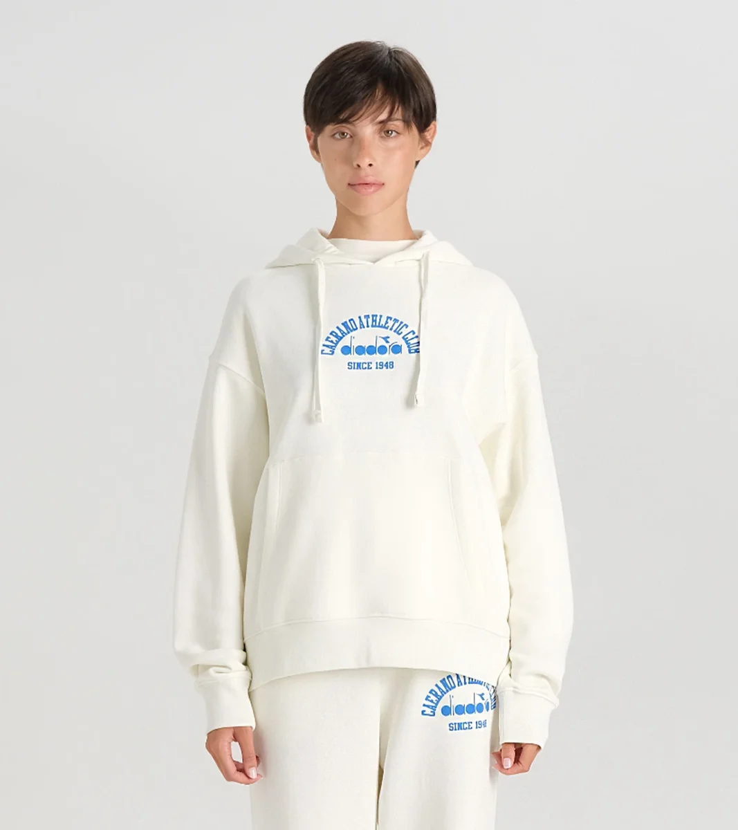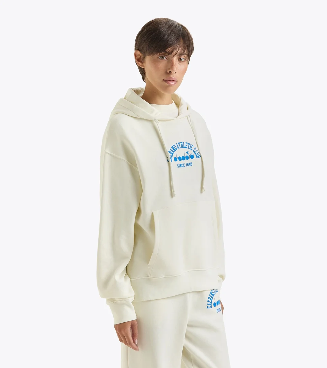 Lässiger Hoodie mit Kängurutasche. Wissenswertes: Die gestickten Grafiken auf dem Blockfarben-Design sind von den Sportarchiven von Diadora inspiriert und zeigen die Koordinaten des Hauptsitzes in Caerano di San Marco, Italien. Der Hoodie 1948 Athl. Club verbindet Stil und Tradition und bietet eine moderne Interpretation des ikonischen Looks von Diadora.