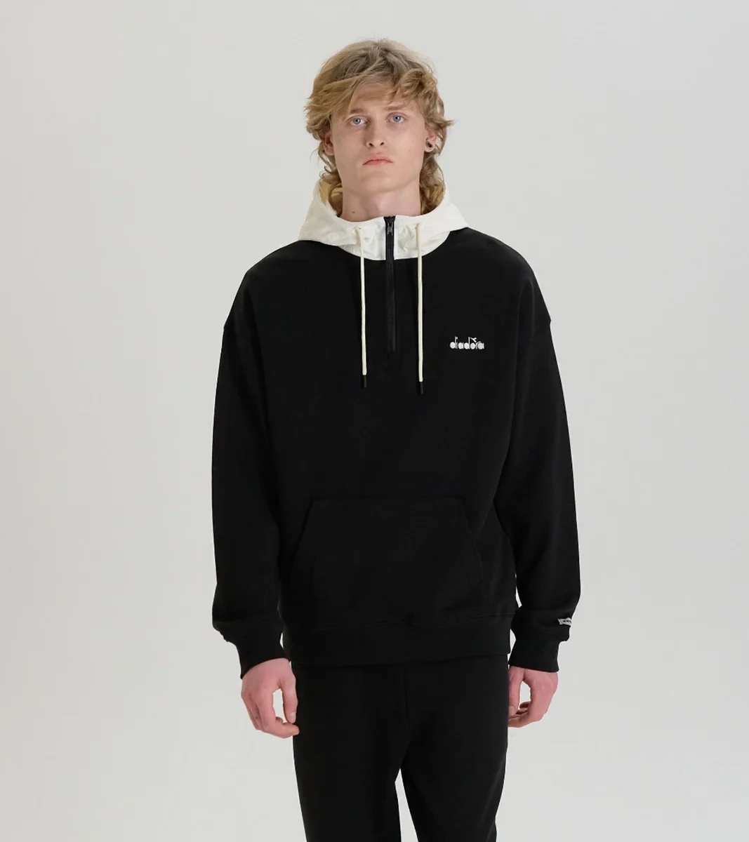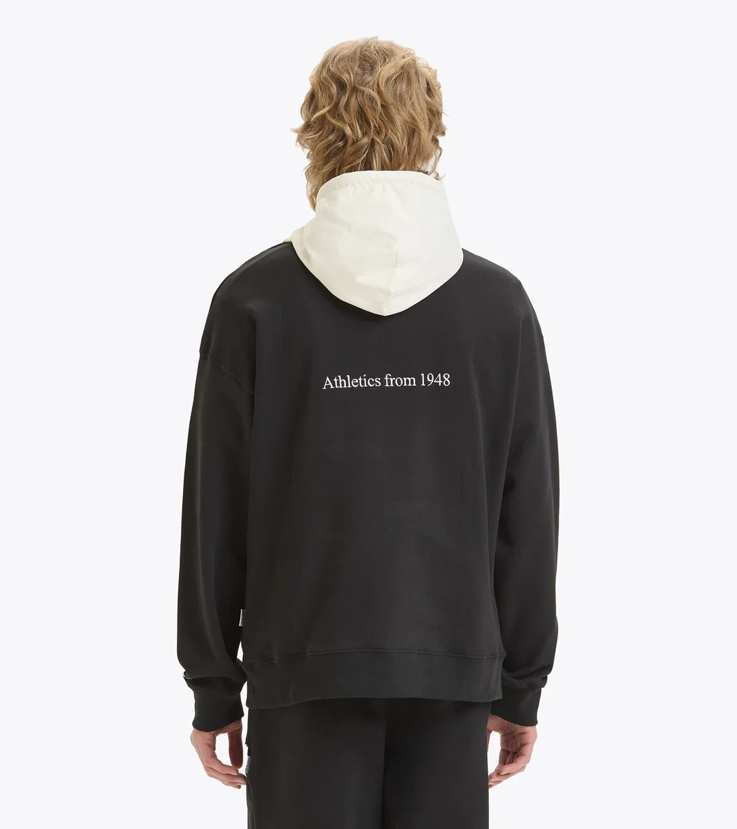 Legacy Vision. Eine Kollektion, die Sportbekleidungsklassiker mit einem zeitgemäßen Touch neu interpretiert. Der Hoodie HZ Legacy kombiniert einen lässigen Stil mit technischen Elementen und ist aus italienischem Lamintess-Nylon und teilweise recycelter Baumwolle gefertigt, die RCS-zertifiziert ist. Seine technische Kapuze verfügt über verstellbare Kordelzüge, die Schutz vor Kälte bieten. Mit einer Kängurutasche vorne und einer Stickerei auf der Rückseite.
