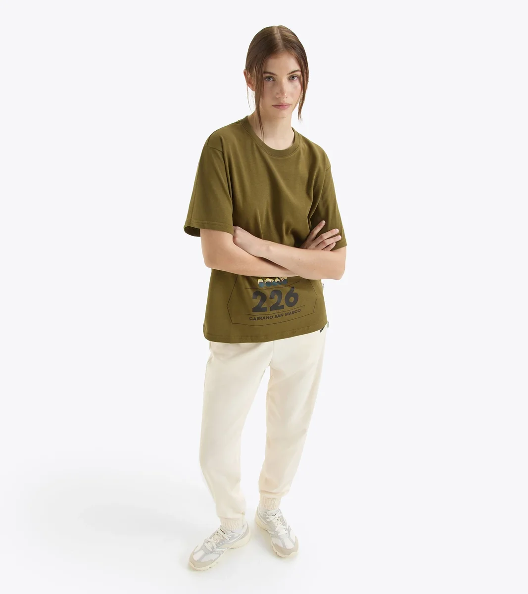 Inspiriert von der bemerkenswerten Geschichte der ehemaligen italienischen Mittelstreckenläuferin Gabriella Dorio, ziert das T-Shirt SS G.D. 1984 die Nummer 226, die Dorio in Los Angeles trug, als sie die Goldmedaille im 1500-Meter-Lauf gewann.Dieses T-Shirt ist reich an Sportgeschichte und besteht aus Jersey-Baumwolle. Es bietet eine bequeme Passform und ein geschlechtsneutrales Design, das für jeden Stil und jedes Geschlecht geeignet ist.