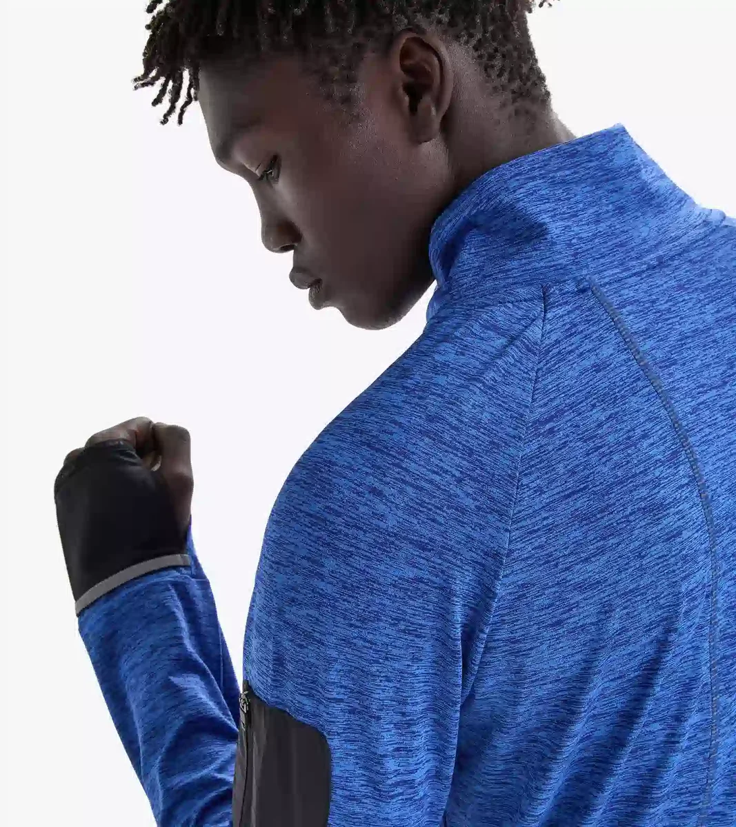 Läufer wissen es nur zu gut: Die richtige Kleidung ist beim Laufen im Winter unerlässlich. Dieses Warm Up Winter Sweat Be One ist ein Herren-Laufshirt aus Polyester mit Melange-Effekt, gebürsteter Innenseite und 1/2-Reißverschluss.