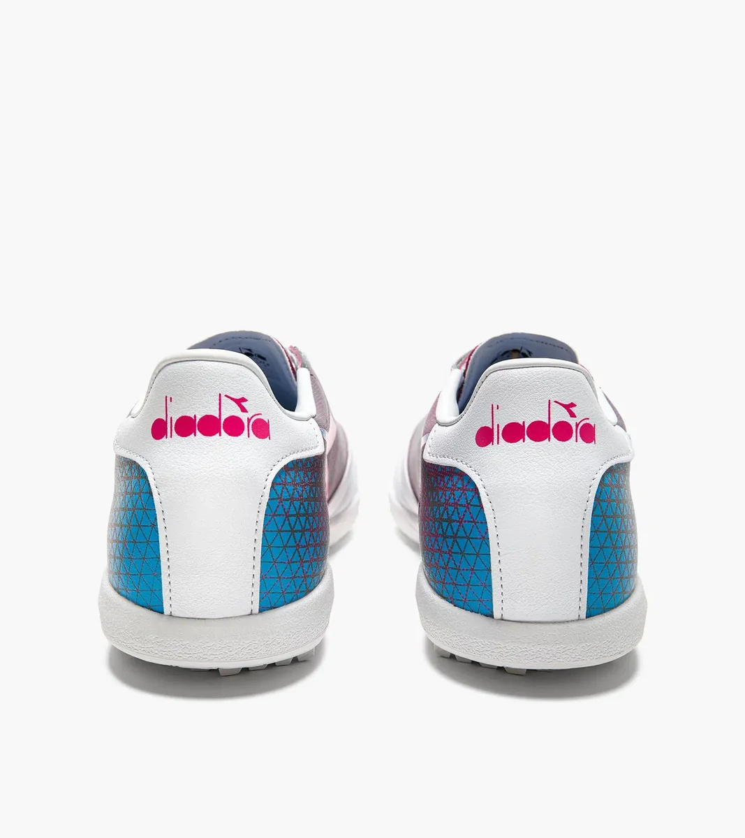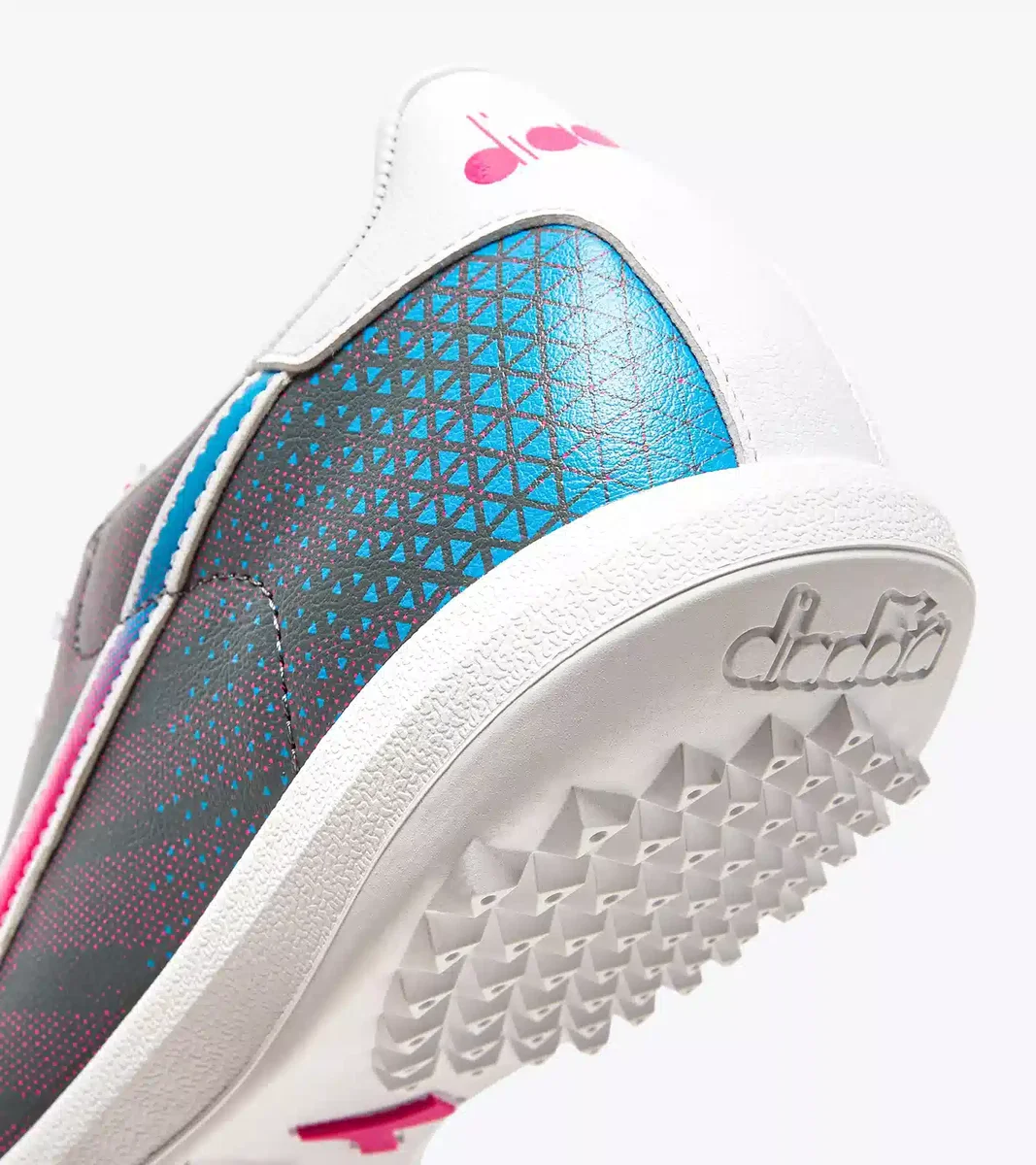 Die verschleißfeste Gummi-Außensohle wurde speziell für Kunstrasenflächen mit einer starren Struktur oder extrem festen Oberflächen entwickelt. Seine technischen Eigenschaften werden durch eine ansprechende Ästhetik ergänzt, die in jedem Spiel einen bleibenden Eindruck hinterlässt.