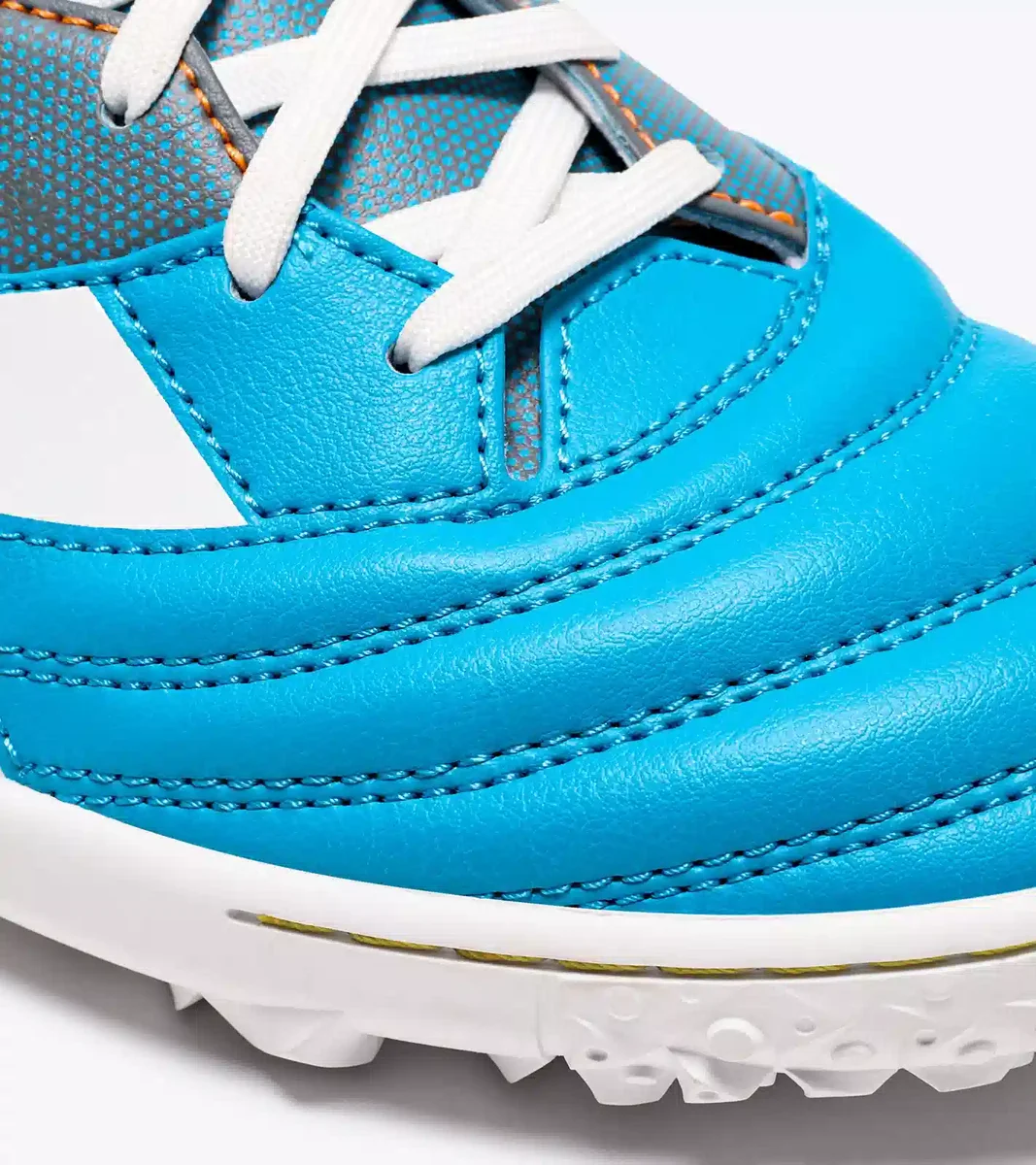 Die verschleißfeste Gummi-Außensohle wurde speziell für Kunstrasenflächen mit einer starren Struktur oder extrem festen Oberflächen entwickelt. Seine technischen Eigenschaften werden durch eine ansprechende Ästhetik ergänzt, die in jedem Spiel einen bleibenden Eindruck hinterlässt.