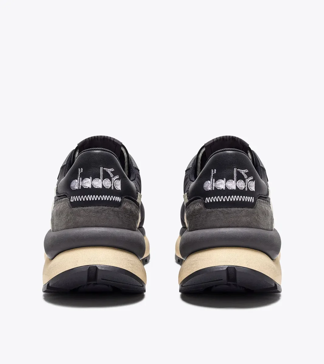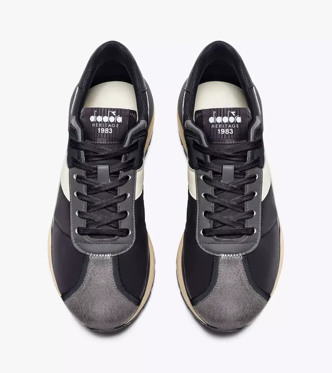 OG-Obermaterial des Diadora-Laufschuhs von 1983. Sohle mit übergroßer Stabilisierungssohle für einen zeitgemäßeren Look