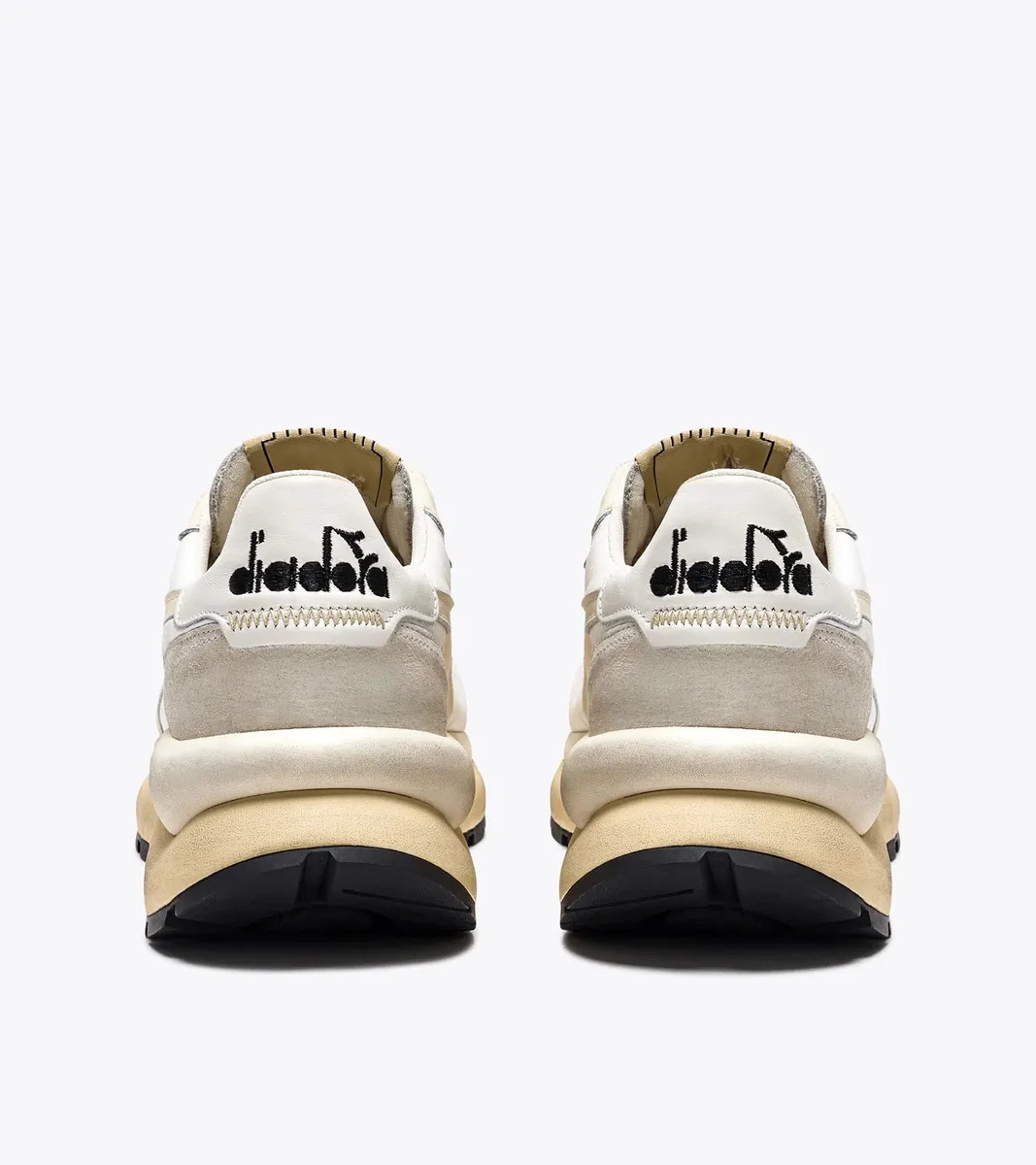Das Wachs ist ein typisches Finish der Diadora Heritage Sneakers. Es verstärkt die natürliche Farbe des Leders, schützt es und macht es widerstandsfähiger gegen Wasser. Der Wachsprozess von Diadora hinterlässt Unvollkommenheiten, die jedes Paar Sneakers einzigartig machen