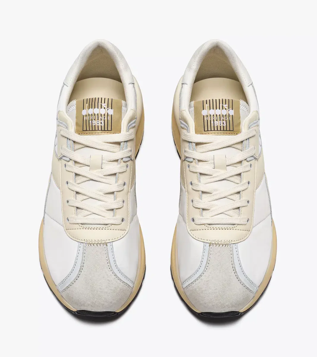 OG-Obermaterial des Diadora-Laufschuhs von 1983. Sohle mit übergroßer Stabilisierungssohle für einen zeitgemäßeren Look