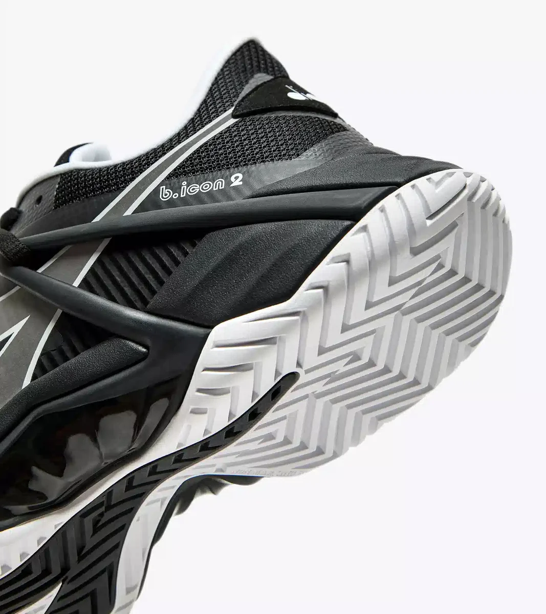 B.Icon 2 AG ist ein Tennisschuh für Herren, der für Spieler aller Spielstärken entwickelt wurde und auf Hartplätzen oder Sandplätzen eingesetzt werden kann. Obermaterial aus SuprellTech, Air Mesh und D-Skin, plus Außenhaken für hervorragende Stabilität. Anatomische Einlegesohle aus stoßfestem EVA; Zwischensohle dd anima C.C.B. Außensohle aus Gummi mit verschleißfester Duratech 5000-Mischung. Verwendung: