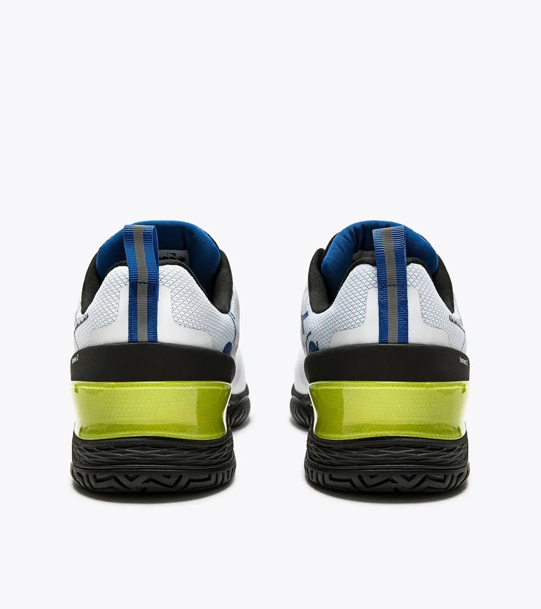 Blushield Torneo 2 AG ist ein Tennisschuh für Herren, der für Spieler aller Spielstärken entwickelt wurde und auf Hartplätzen oder Sandplätzen eingesetzt werden kann. Obermaterial aus SuprellTech, Air Mesh und D-Skin für hervorragende Stabilität, Atmungsaktivität und Komfort, weiches Lycra-Futter mit rutschfestem Design. Herausnehmbare, dnattivo-Einlegesohle; Mittelsohle aus leichtem EVA und Fußgewölbeverstärkung für verbesserte Stabilität; Blushield-Technologie im Mittelfußbereich. Außensohle aus Gummi mit besonders verschleißfester Duratech 5000-Mischung. Verwendung: