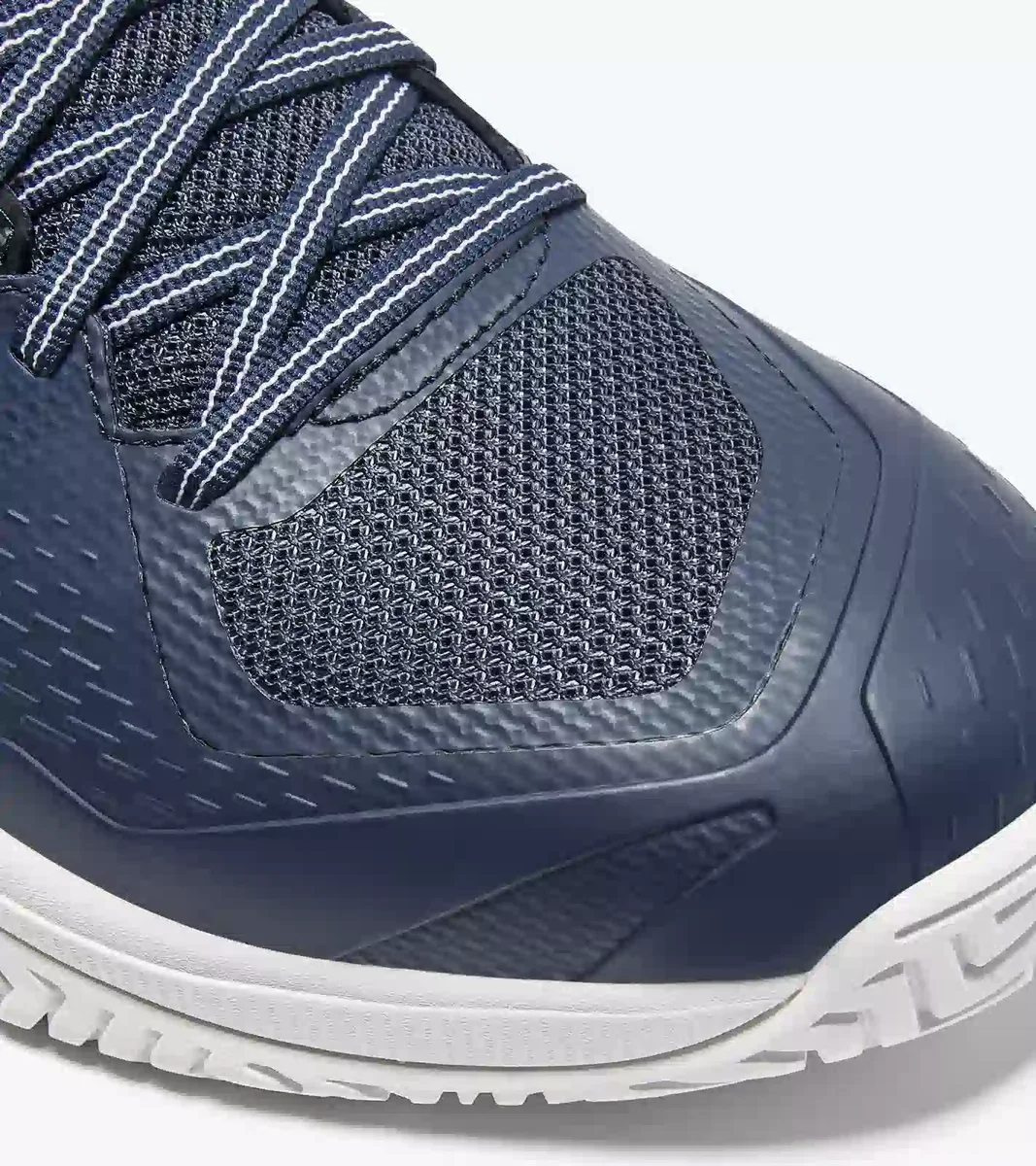 Der Torneo ist unübertroffen in Sachen Stabilität und Halt und zeichnet sich als Diadora-Kraftpaket für hochintensives Spiel aus. Dieser Tennisschuh wurde für Profis entwickelt, die Wert auf Schutz und Dämpfung legen. Er verfügt über die Blushield-Technologie in der Zwischensohle, die sich jedem Schritt anpasst und so für maximale Kontrolle sorgt.