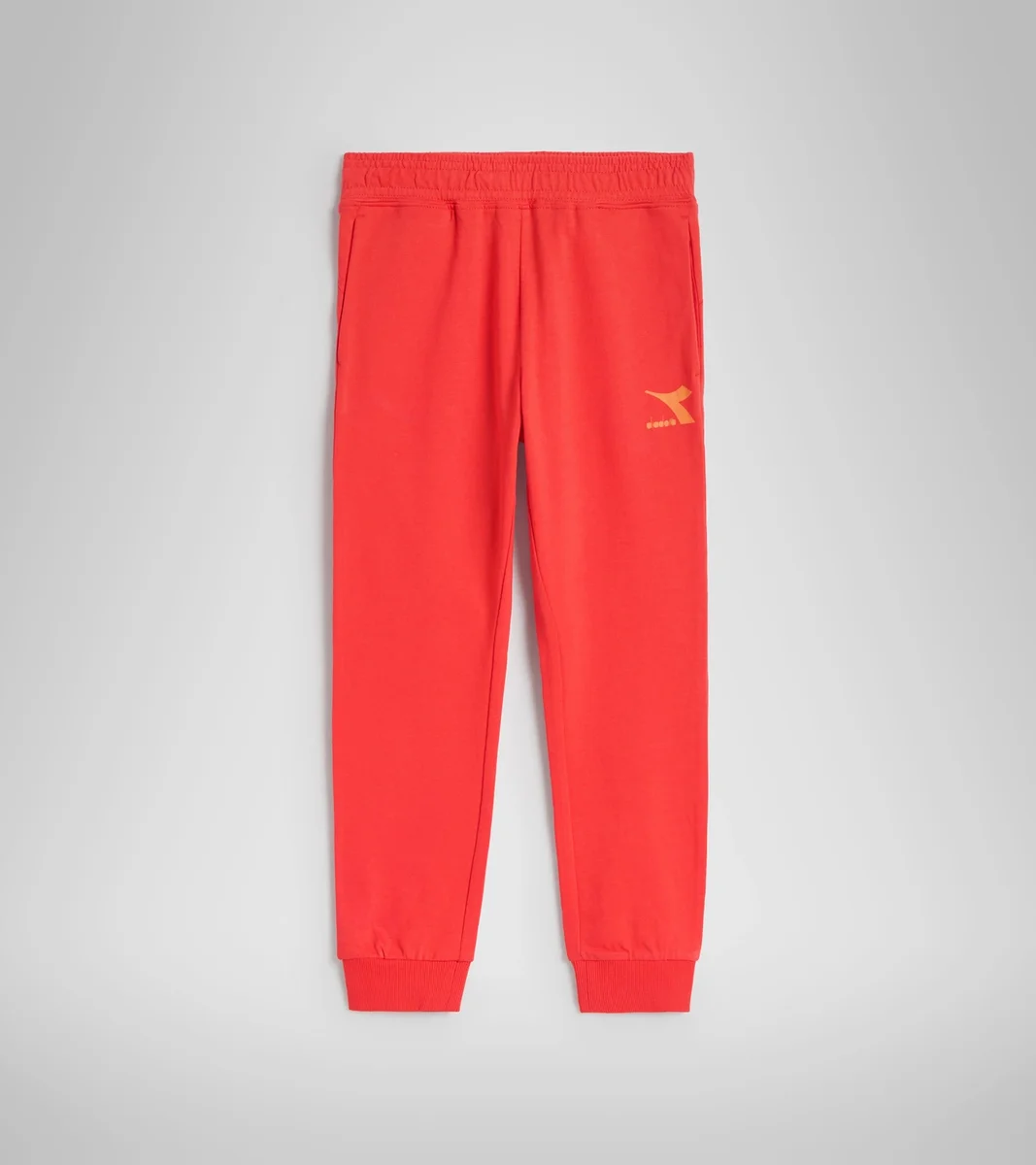 JU Cuff Pants Rainbow: perfekt für Jungen und Mädchen, die Sport und Komfort lieben, am liebsten beides zusammen. Aus schwerem Baumwolljersey, mit regulärer Passform, erhältlich in Mohnrot, Pink und Schwarz, mit dem Diadora-Mini-Logo auf der Vorderseite.