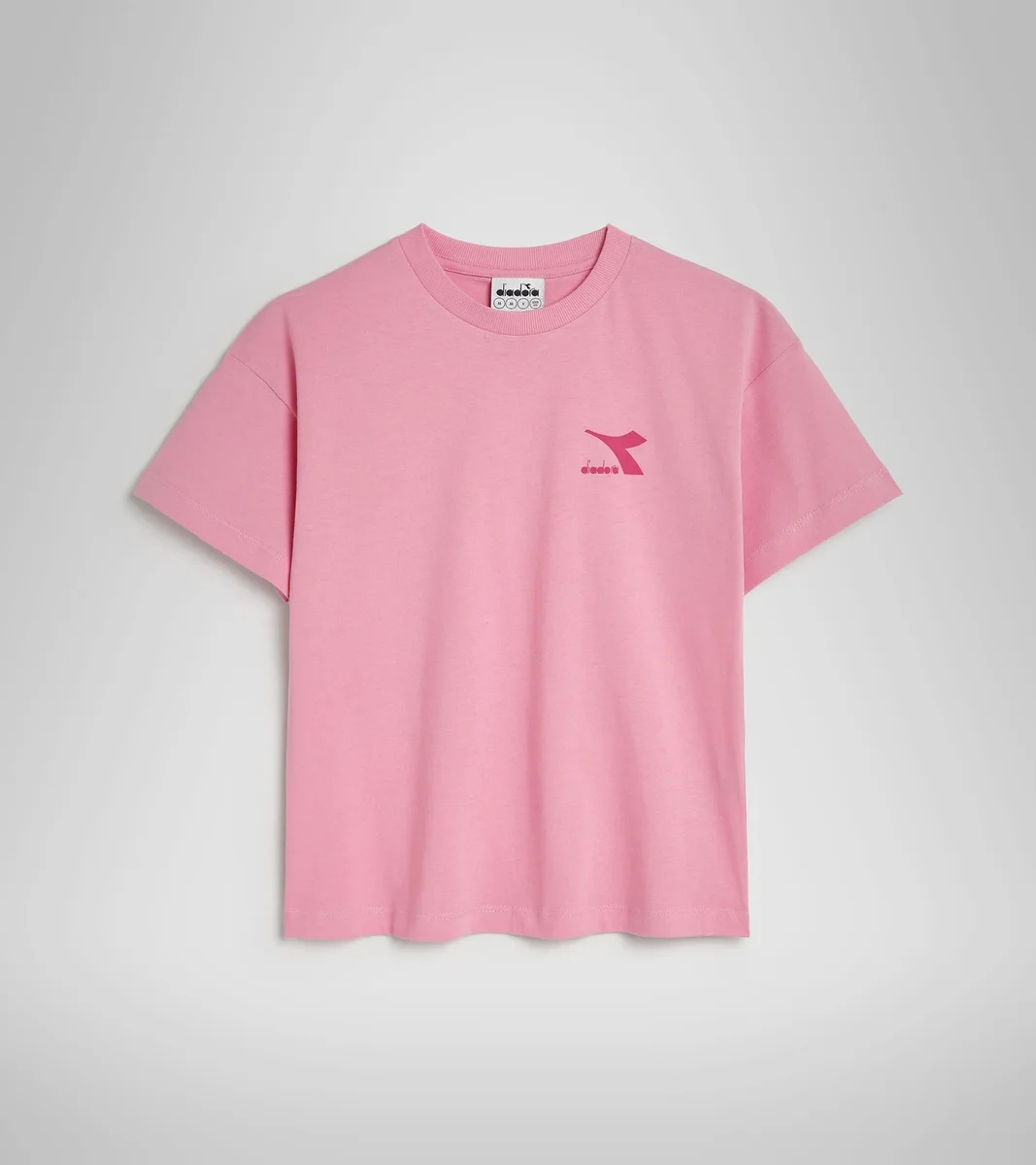 Hier sind die Junior-T-Shirts aus Baumwolle, die sich perfekt für ein farbenfrohes und minimalistisches Outfit eignen: Unisex, inspiriert von den Farben des Regenbogens und mit dem Mini-Logo auf der Vorderseite, perfekt für einen super Look.