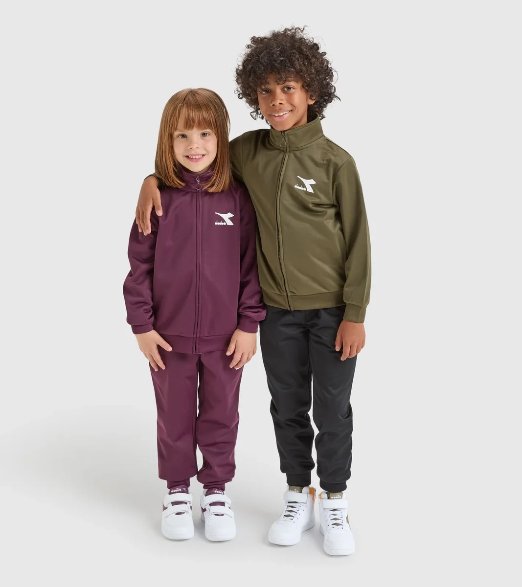 Sportliche Ästhetik und ikonischer Stil sind die richtigen Adjektive, um den JU. Trainingsanzug FZ Chromia zu beschreiben. Dieser Unisex-Trainingsanzug aus Polytricot für Jungen und Mädchen ist ein sportliches Outfit, das ikonischen Stil mit einer regulären Passform verbindet. Sweatshirt mit zentralem Reißverschluss und Hose mit verstellbarem Kordelzug in der Taille und dem Diadora-Fregio auf der Vorderseite.