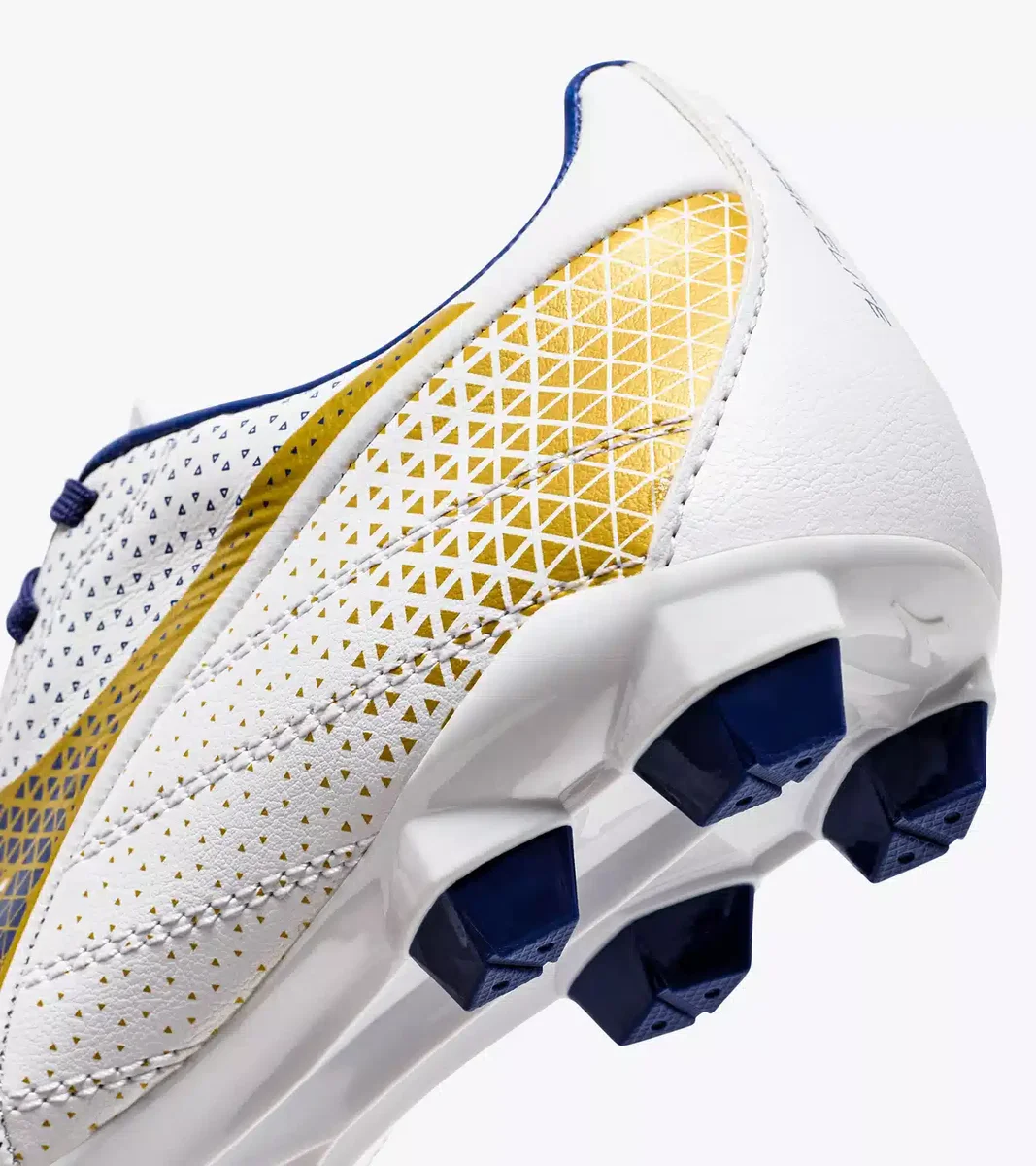 Für die Champions von morgen: Der Brasil Elite Gr Lt LPU Y ist ein Calcio-Schuh mit 14 Stollen, der für kompakte Oberflächen entwickelt wurde. Er verfügt über ein wasserabweisendes Obermaterial, das auch bei Nässe Halt bietet, und weiches Vollnarbenleder für ein angenehmes Tragegefühl. Das Innenfutter besteht aus dehnungsbeständigem Gewebe, während das hintere Futter aus rutschfestem PU gefertigt ist. Darüber hinaus bietet die anatomisch geformte Innensohle Flexpunkte im Vorfußbereich und sorgt so für eine außergewöhnlich bequeme Passform. Die Sohle verfügt über eine leichte Polyurethan-Außensohle mit unterschiedlicher Härte und 14 festen Stollen, wodurch sie für kompakte und synthetische Oberflächen geeignet ist. Der Schuh vereint technische Raffinesse mit ansprechender Ästhetik und präsentiert sich mit einem vom Graffiti inspirierten Muster auf dem Logo, das Ihrem Spiel einen Hauch von Stil verleiht.