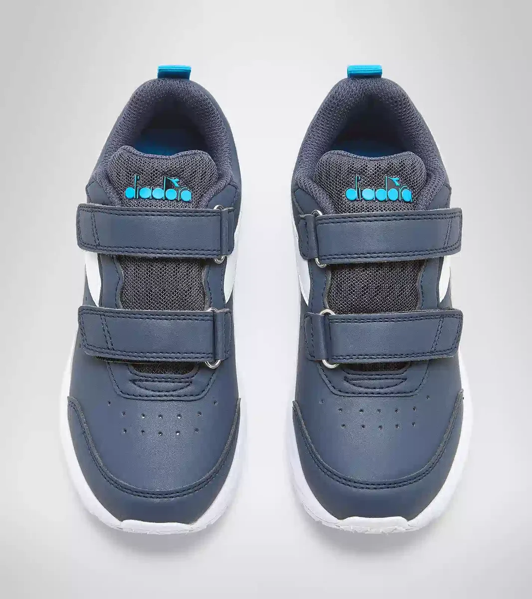 Dieser Sneaker verfügt über ein Suprellsoft-Obermaterial, eine Innensohle aus Baumwolljersey und stoßfestem EVA-Schaumstoff, eine gedruckte EVA-Schaumstoff-Zwischensohle, eine Gummisohle und einen praktischen Klettverschluss.