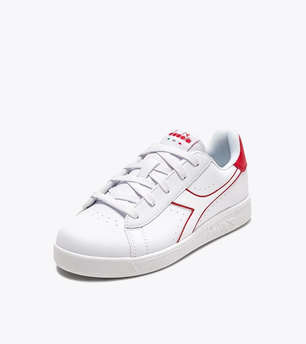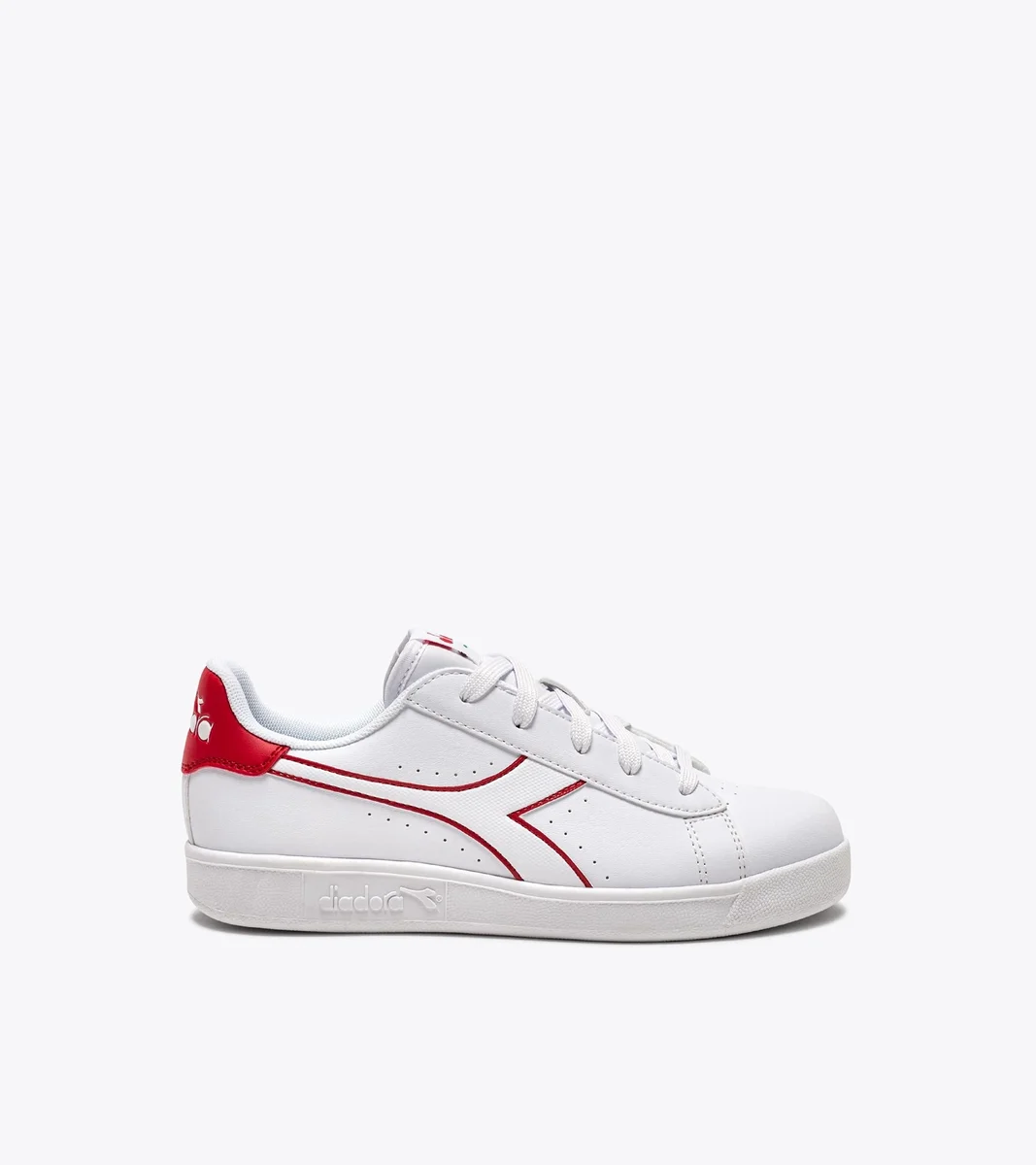 Niedrige Kindersneaker, durchbrochene Details, passender Fregio, Zunge und Rückseite.
