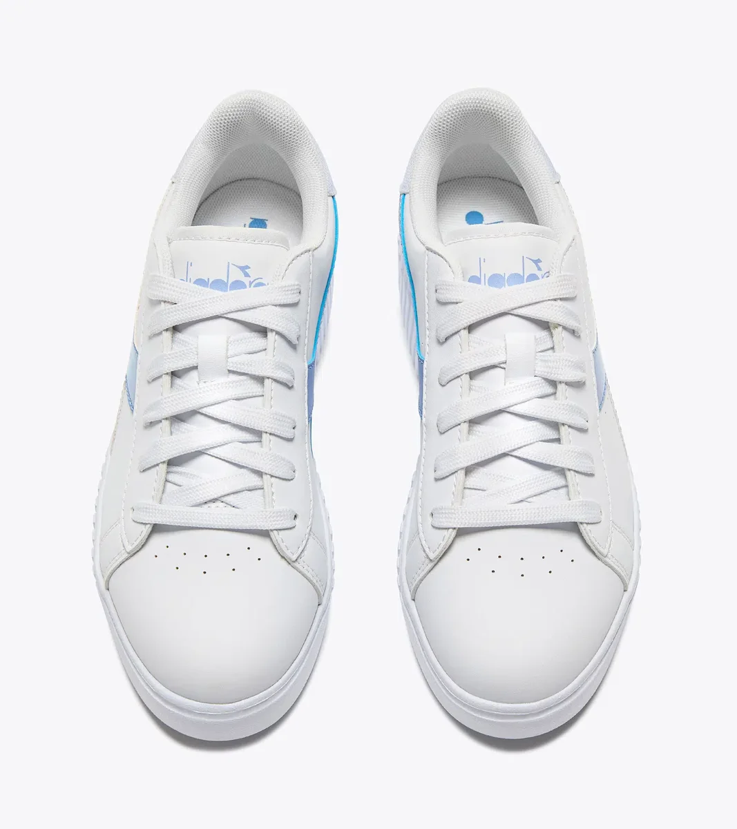 Der kultigste Sneaker von Diadora für Teenager erhält einen kühnen neuen Twist. Diesmal sind es Details mit Glitzer-Spiegeleffekt, die die Regeln des klassischen weißen Sneakers brechen. Die charakteristische erhöhte Sohle des Low-Top-Modells Game? Immer noch da, auffälliger denn je.
