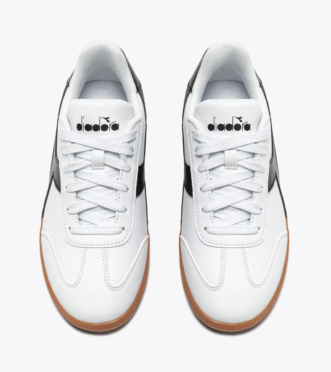 Kyoto GS ist ein flacher Sneaker, der an das ikonische Court-Design der 80er Jahre angelehnt ist – gemacht für junge Fans des Sports und seiner Tradition. Seine unverwechselbare Gummisohle stammt direkt von den klassischen Handballschuhen von Diadora, ein erfolgreiches Detail seit den 1980er Jahren.
