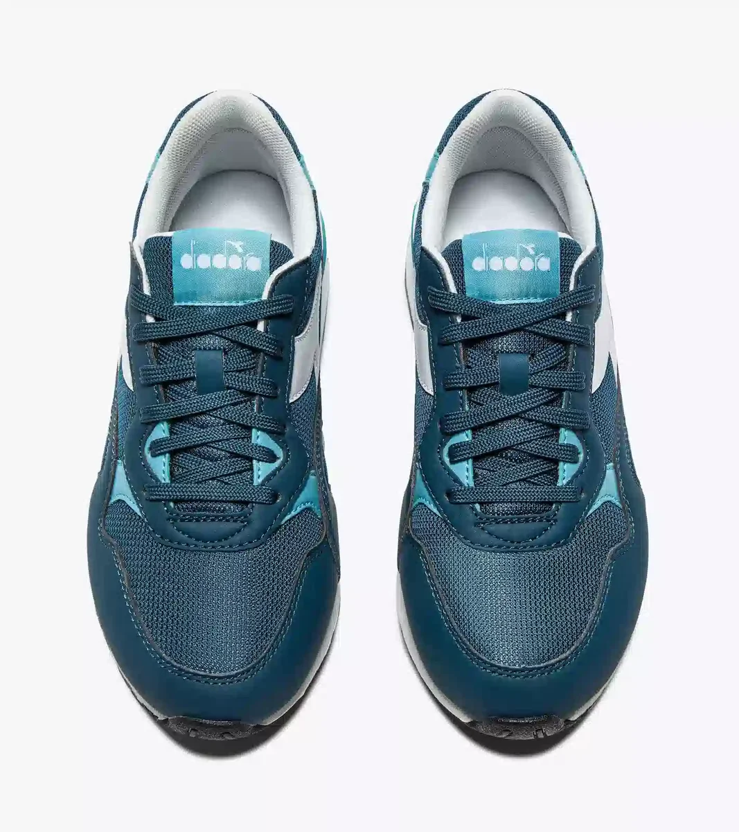 Kinder-Sneaker aus Kunstleder. Kontrastierendes Fregio und weißes Diadora 5ball-Logo. Zweifarbige Sohle. Der N.92 GS ist ein klassischer Retro-Laufschuh, der Komfort und Sportlichkeit vereint.
