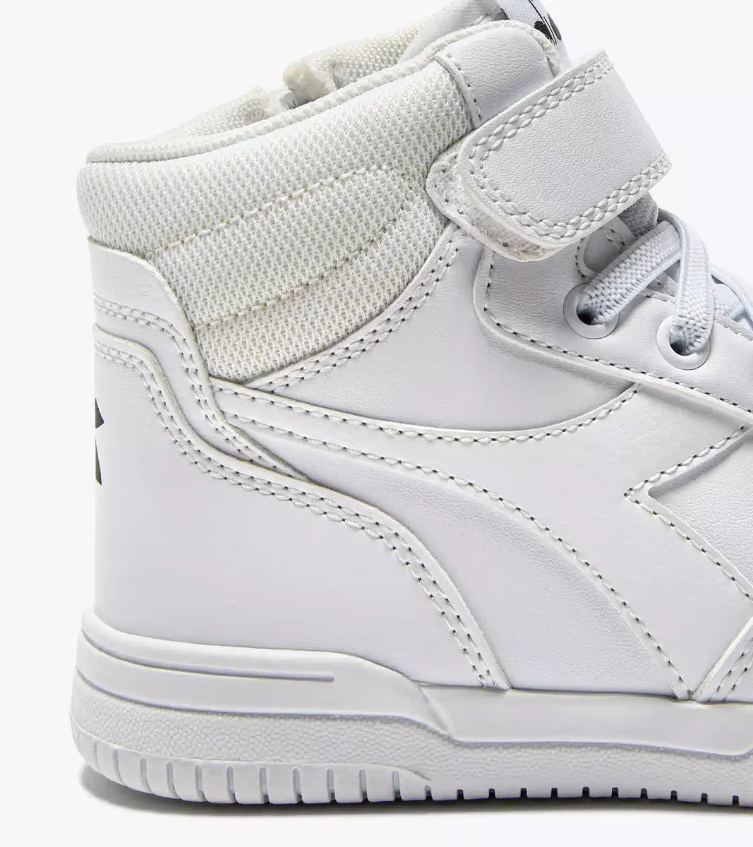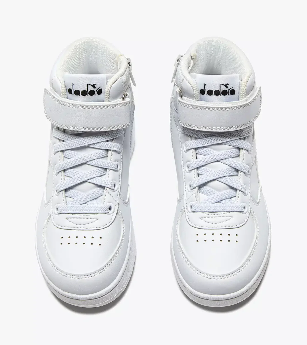 Kinder-Sneaker aus Kunstleder mit Reißverschluss. Das Modell Raptor MID PS verfügt wie die Erwachsenenversion über einen kontrastierenden Fregio und einen Stoffkragen.