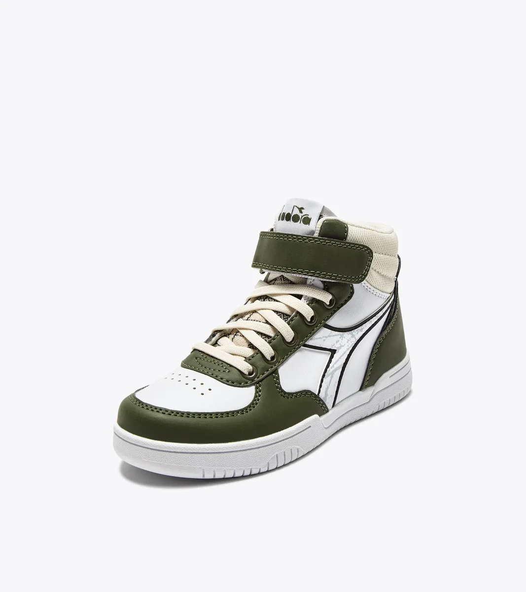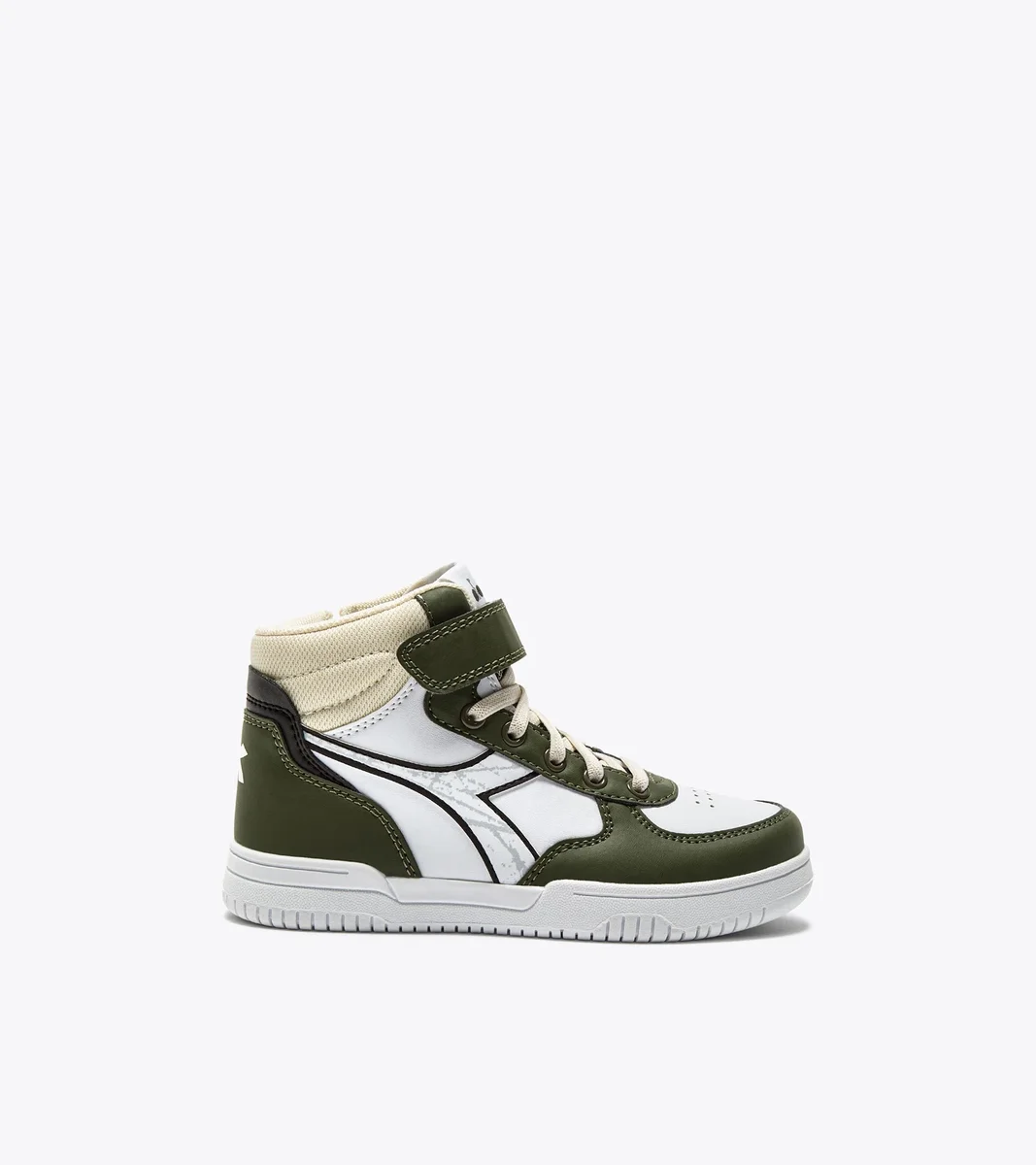 Ein Stück Geschichte, jetzt auch für die Kleinen. Der Raptor Mid Dusty PS ist ein Sneaker für Kinder von 4 bis 8 Jahren, inspiriert vom Design der Basketballschuhe von Diadora aus den 80er Jahren.