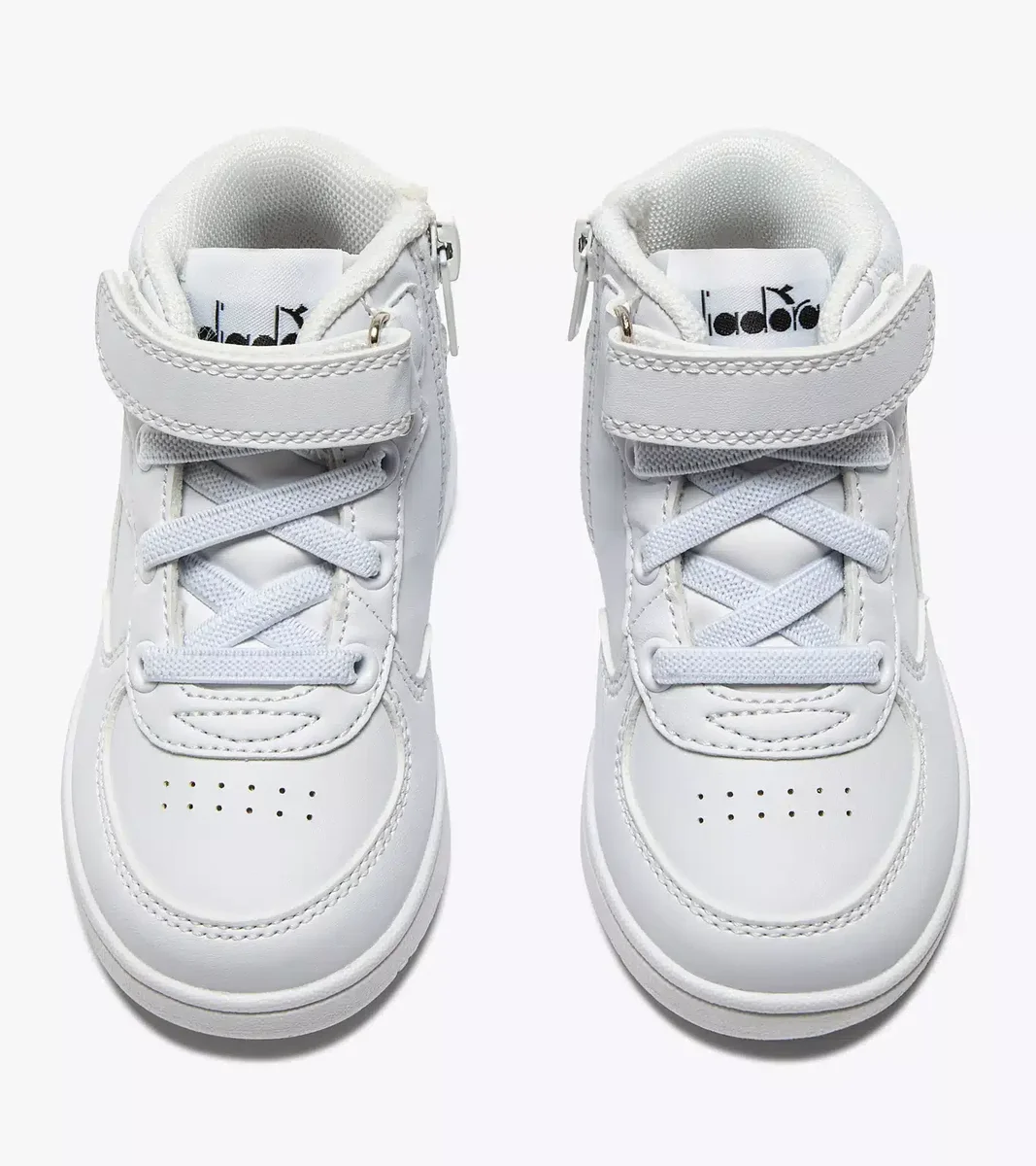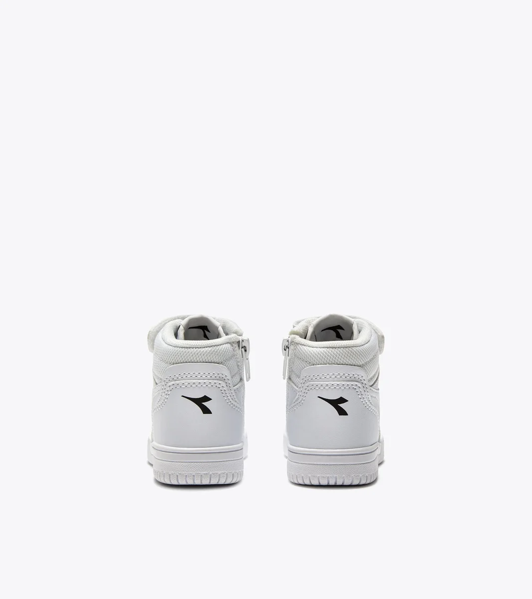 Kindertrainer mit Reißverschluss. Das Modell Raptor MID TD verfügt wie die Erwachsenenversion über einen kontrastierenden Fregio und einen Stoffkragen.