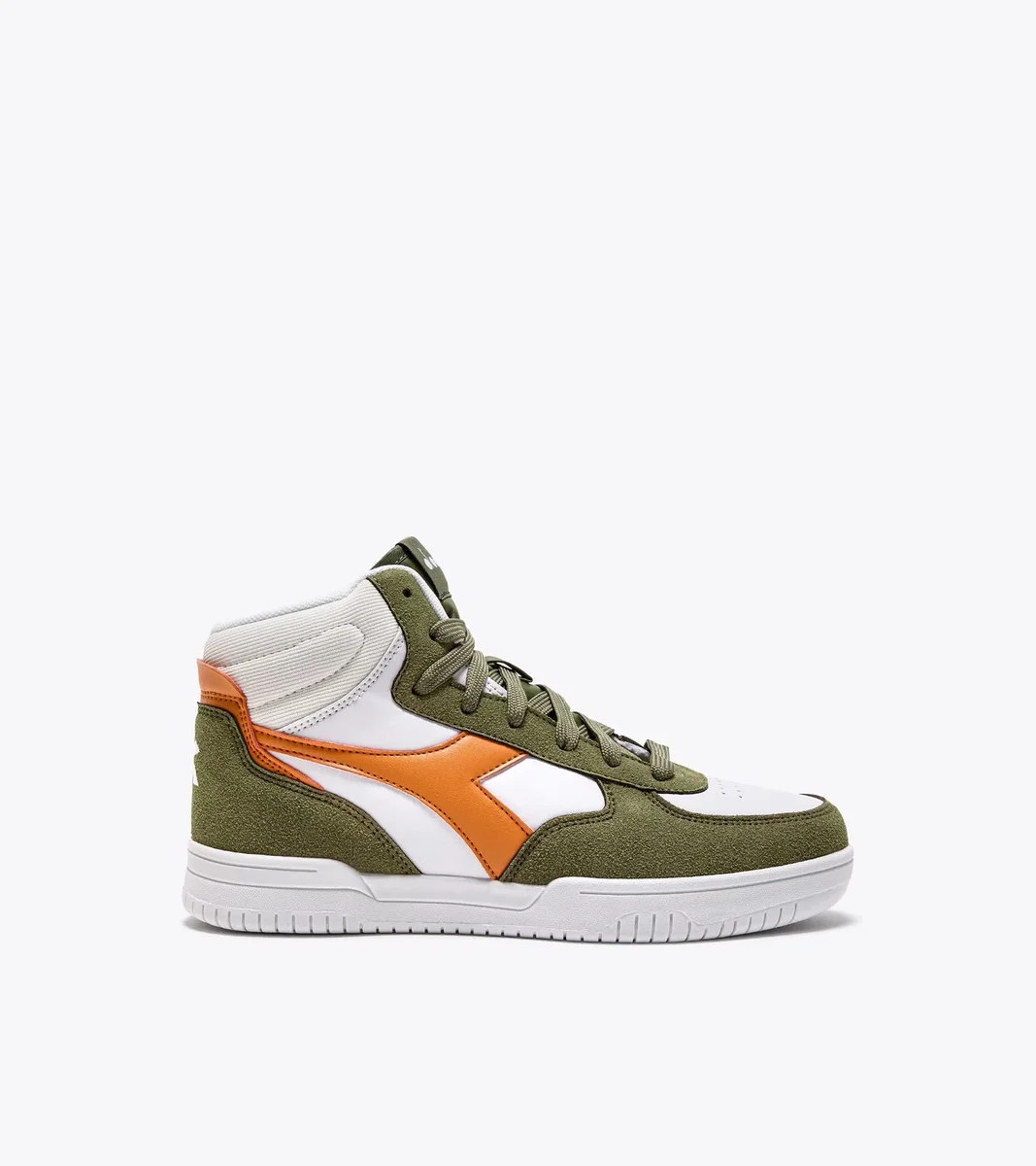 Dieser Sneaker bestimmt Ihren Look. Sie haben ihn gefunden: den Raptor Mid Dusty. Inspiriert vom Basketball der 80er Jahre wird der Mid-Top-Raptor zum Highlight jedes Outfits, ein sportlicher Akzent, den nur die Anspruchsvollsten bemerken werden. Der gepolsterte Kragen bietet zusätzlichen Halt für den Knöchel, und die kontrastierenden strukturierten Details werten das Design auf.